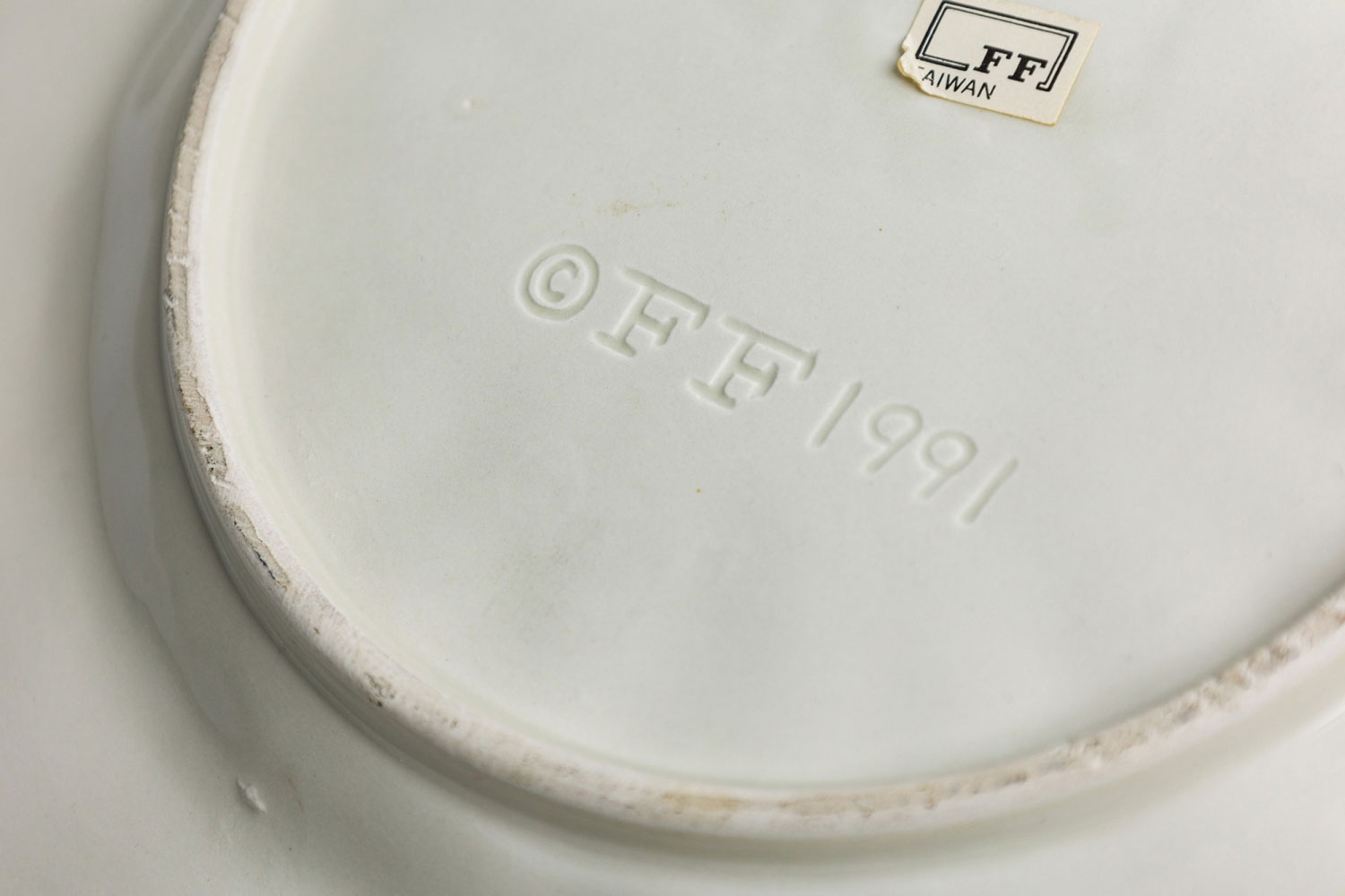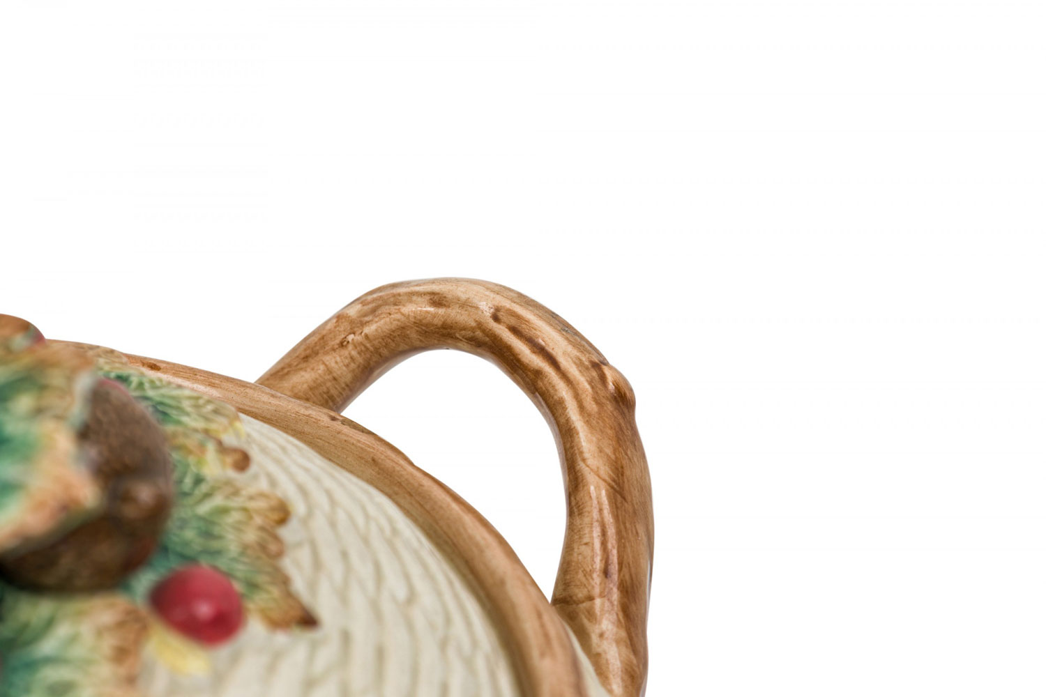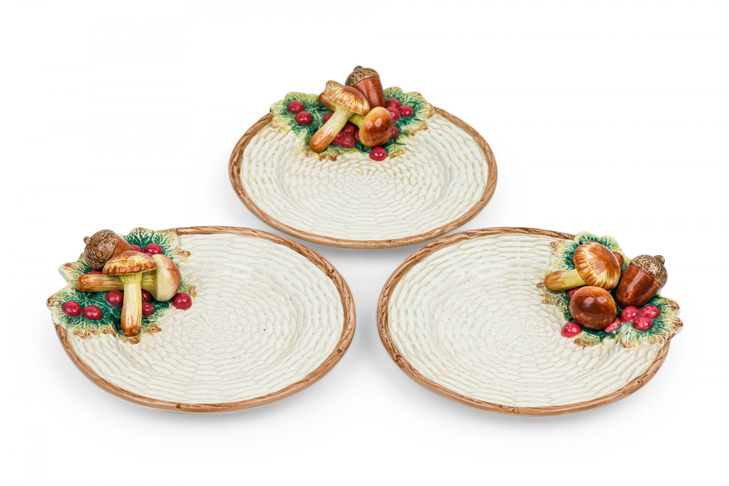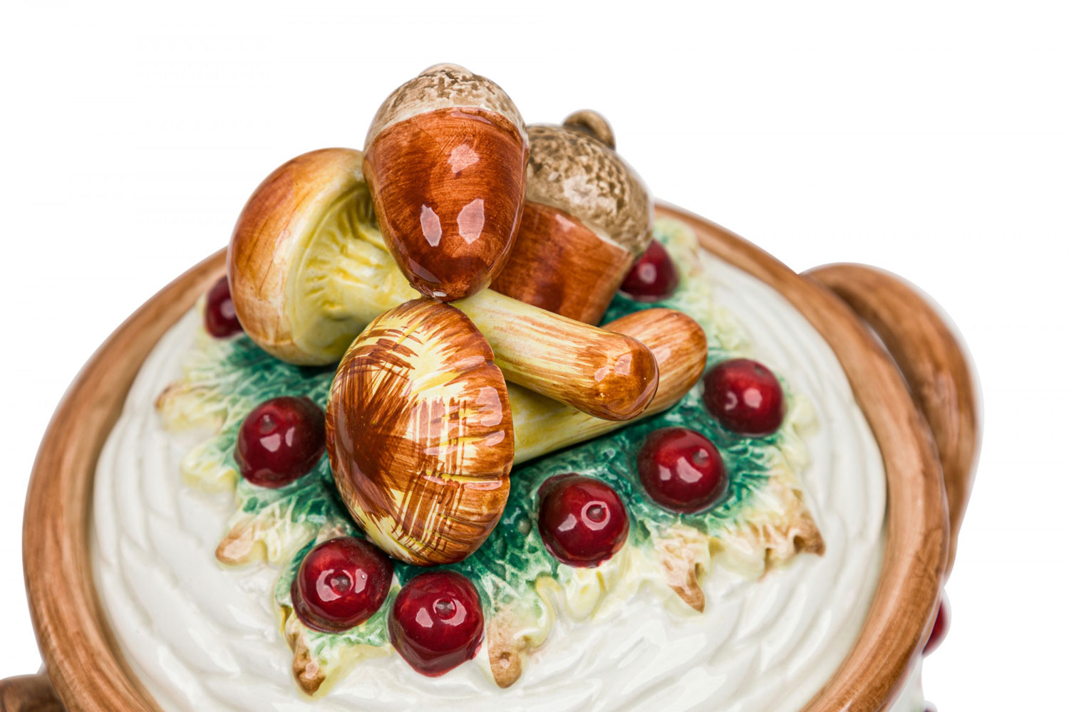 Style: Mid-Century Materials & Techniques: Ceramic, painted Category: Dining Room Condition: A few chips. Mushroom on small oblong dish has been broken and repaired. Good; Minor losses