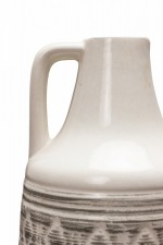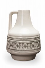 German Mid-Century Gray Horizontal Line and Diamond Banded Beige Glazed Ceramic Jug