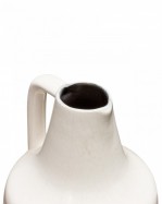 German Mid-Century ceramic pitcher with a diamond banded pattern created by several small incised black horizontal lines against a beige glazed ground. (numbered on bottom: 100)