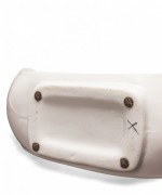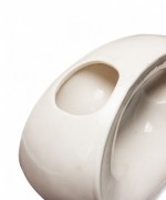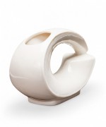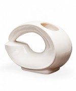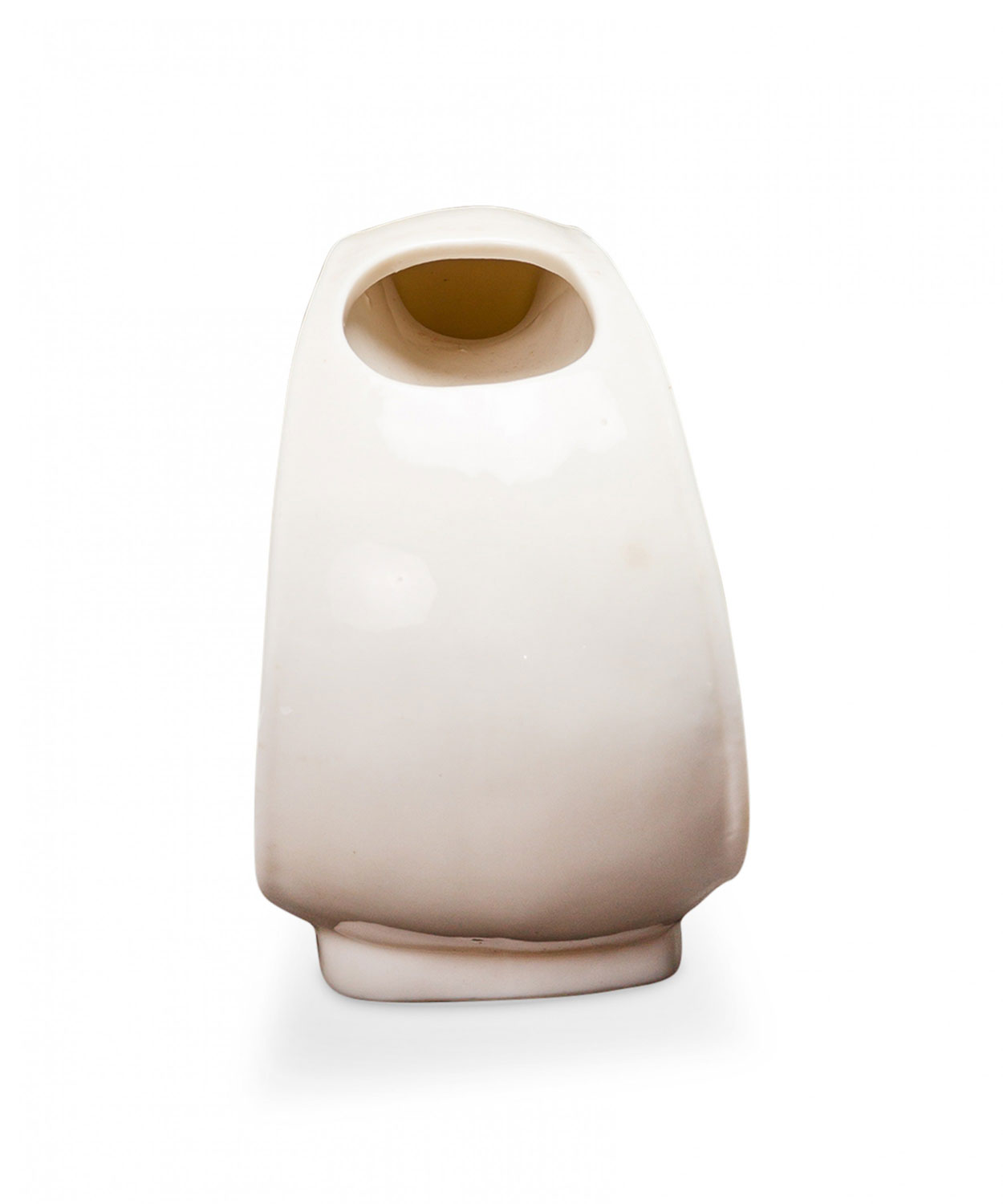 German Mid-Century white oval-form tapered vase with hollow center and off-set circular opening..