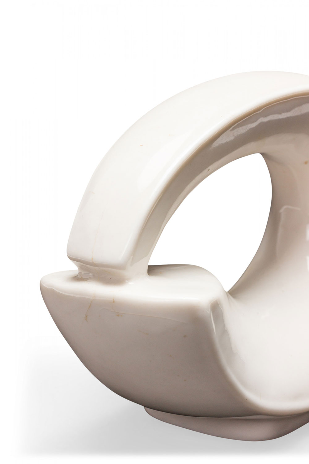 German Mid-Century Hollow Oval Form Abstract White Ceramic Vase