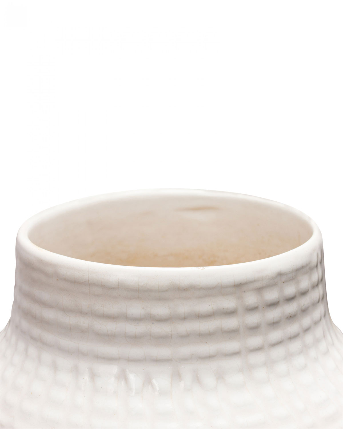 German Mid-Century white porcelain cylindrical vase with a raised irregular grid pattern. (numbered on bottom, 547-30)