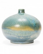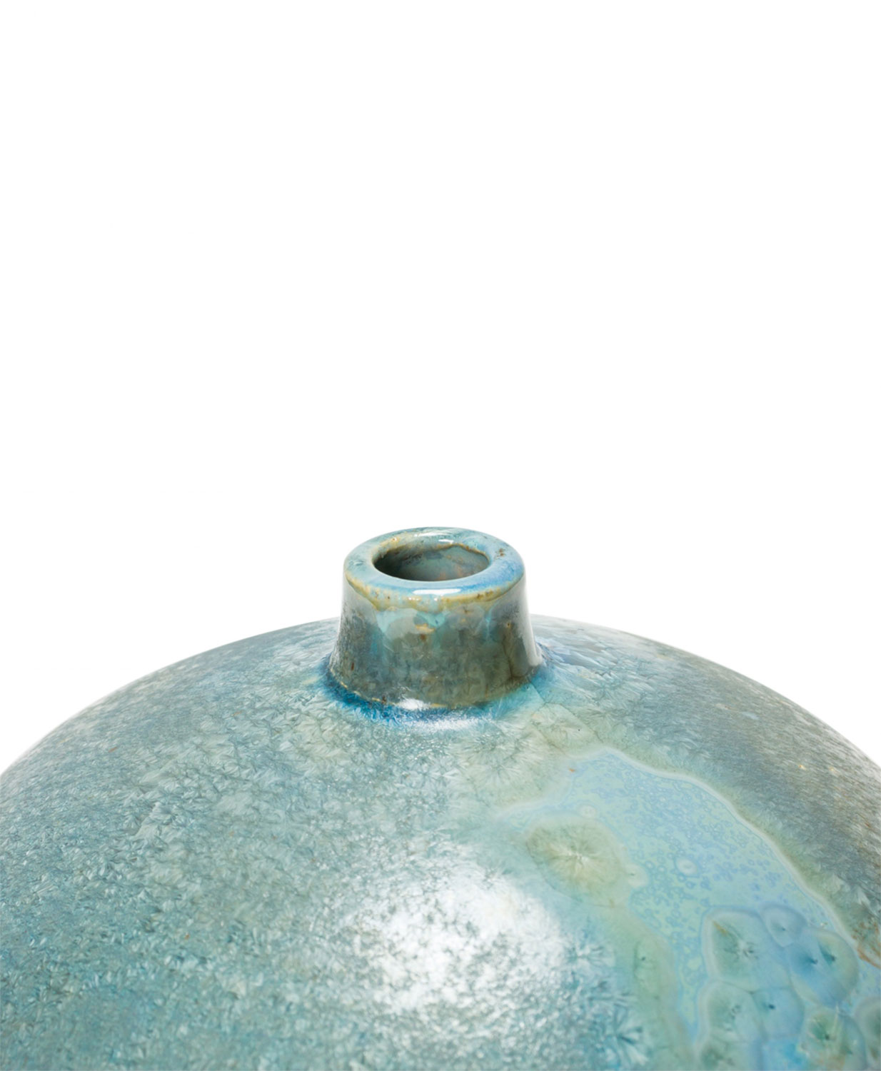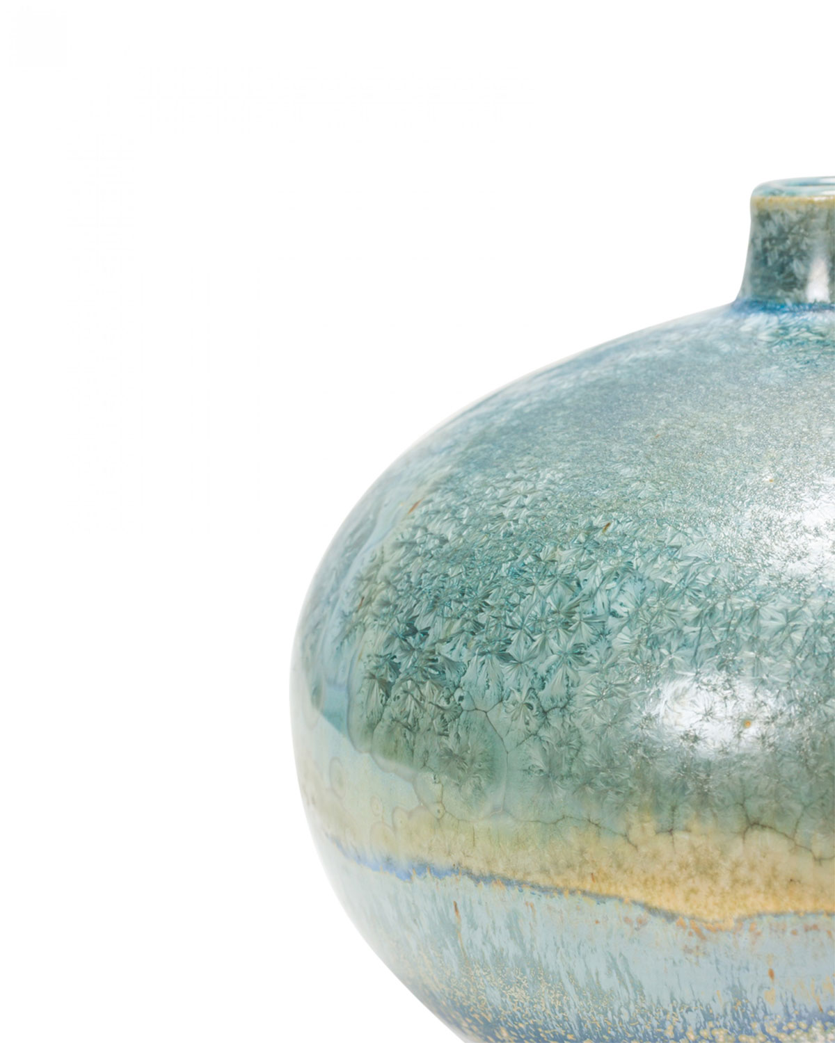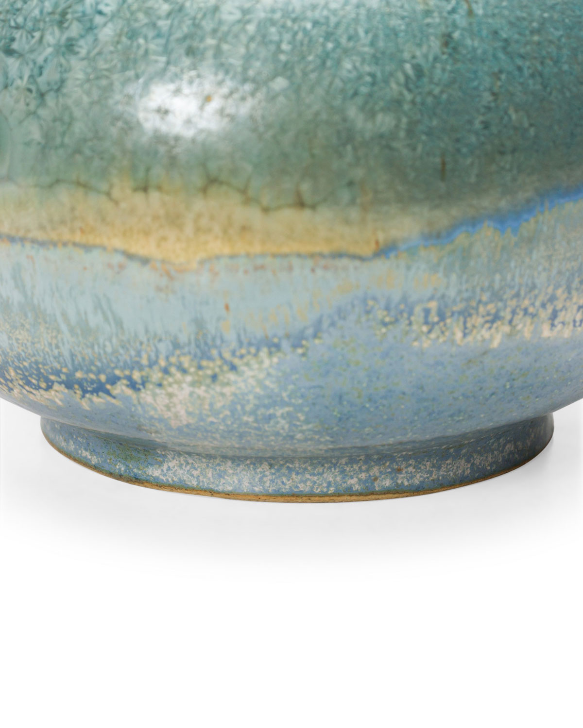 German Mid-Century Round Multi-Tonal Blue and Gold Glazed Ceramic Vase