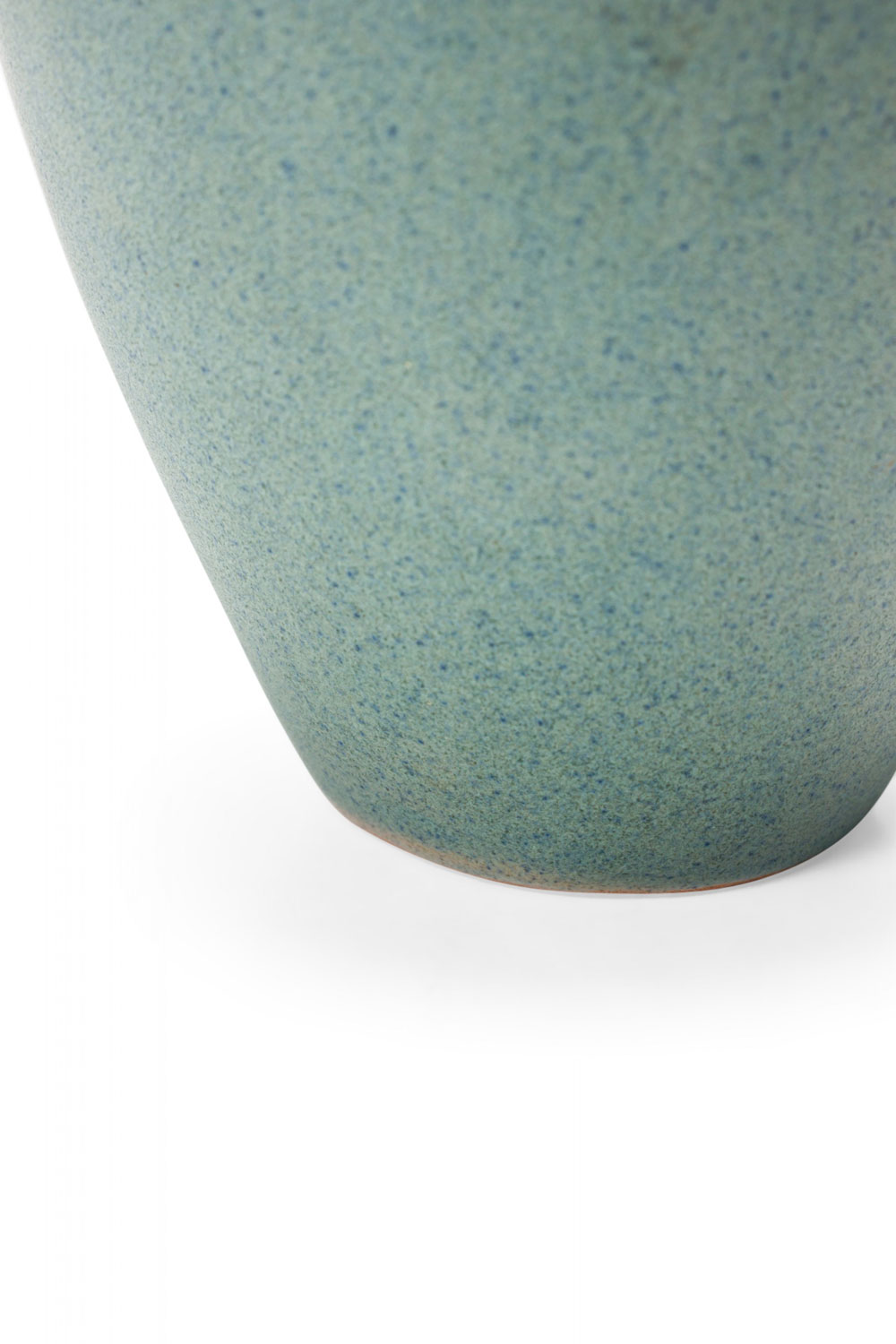 German Mid-Century ceramic pitcher with a tapered rounded form with a slanted mouth / spout that extends to a rounded handle, finished with a dimensional sage green glaze..