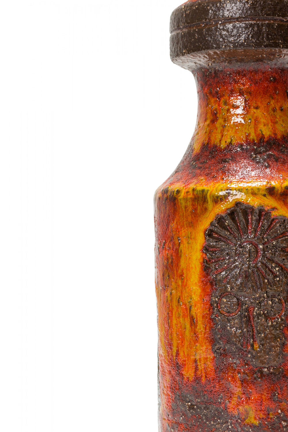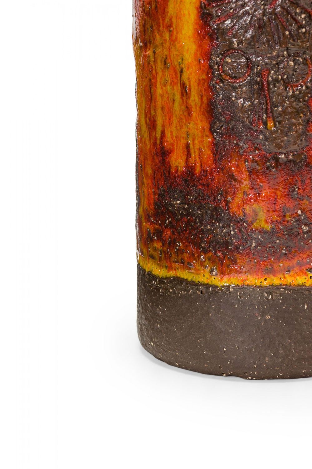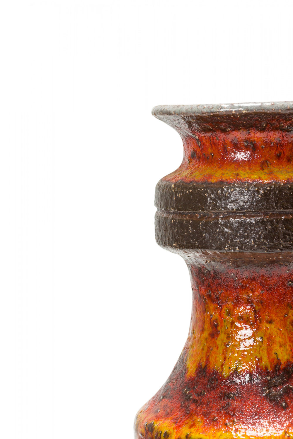 German Mid-Century Textured Orange, Yellow, and Brown Fat Lava Ceramic Vase