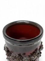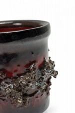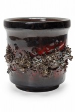 Glit HF Icelandic Mid-Century Textured Red and Black Fat Lava Ceramic Pot