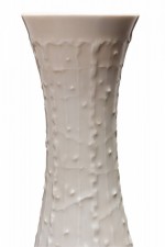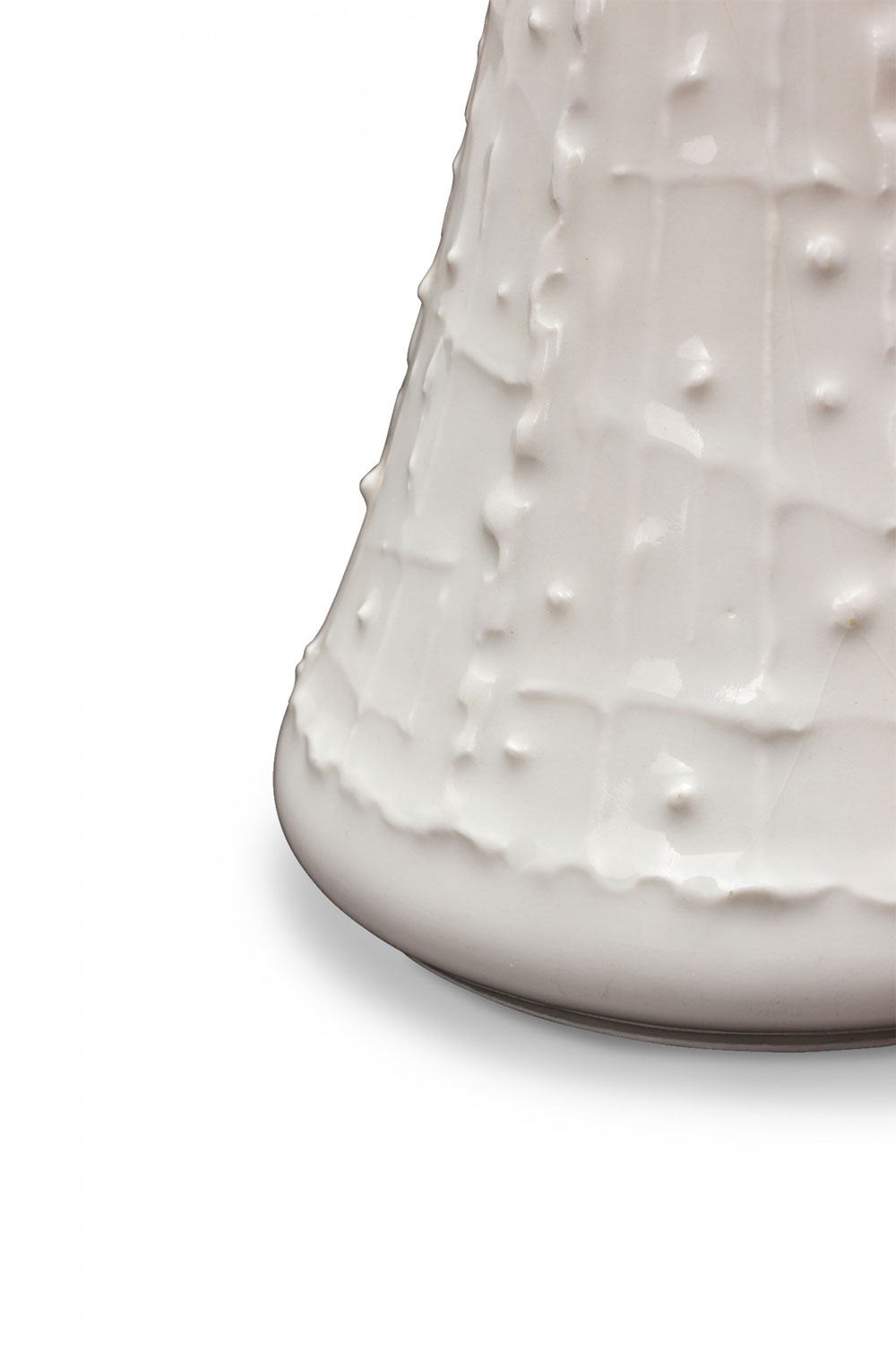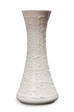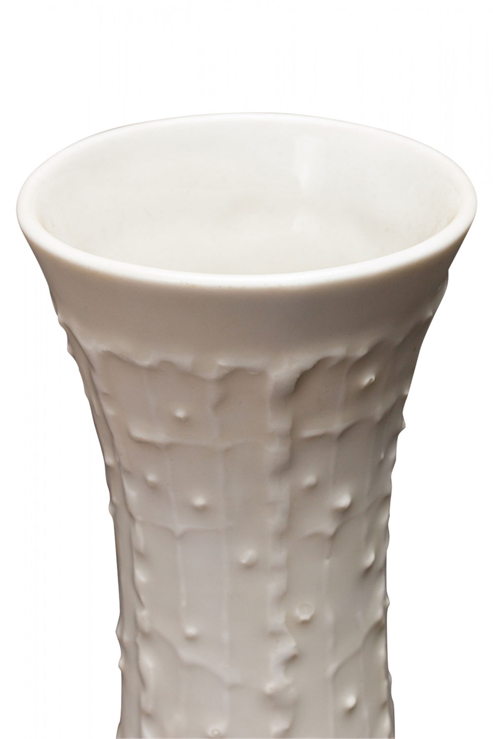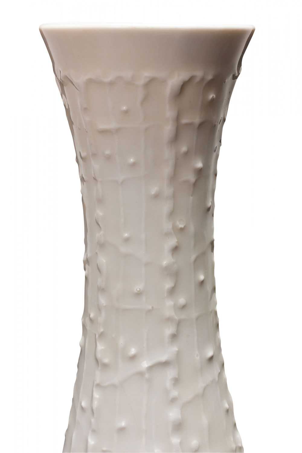 West German Mid-Century hourglass-form white porcelain vase with an organic raised dot and line pattern. (mark on bottom ROYAL PORZELLAN BAVARIA KPM GERMANY HANDARBEIT).