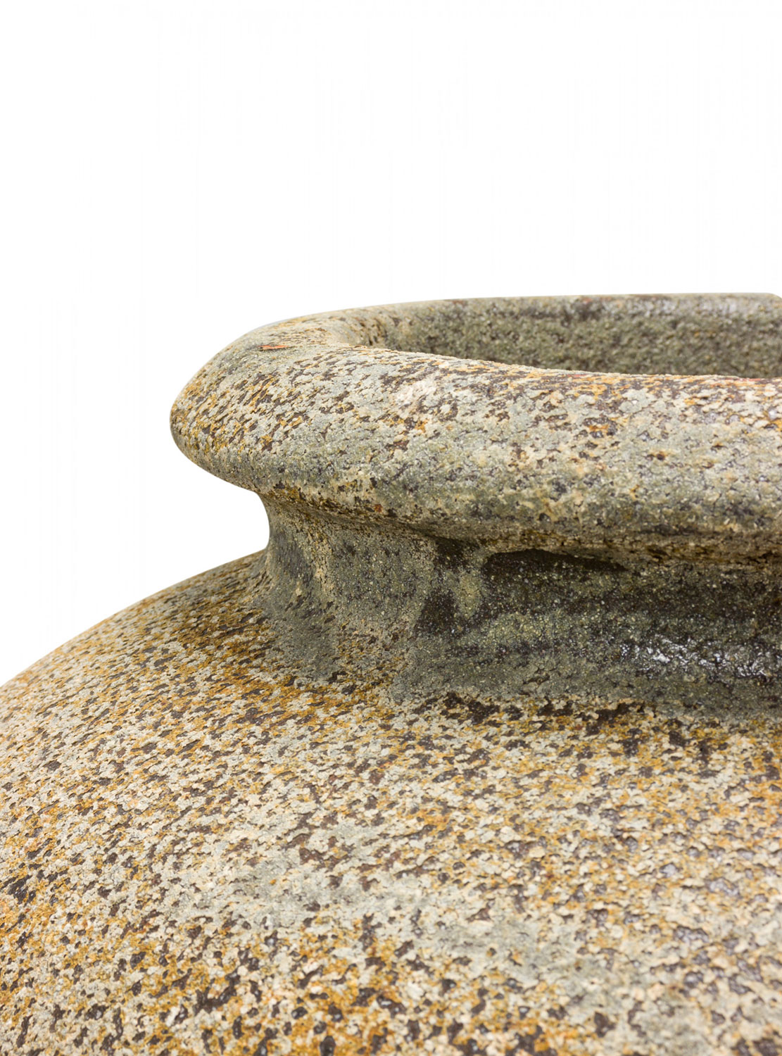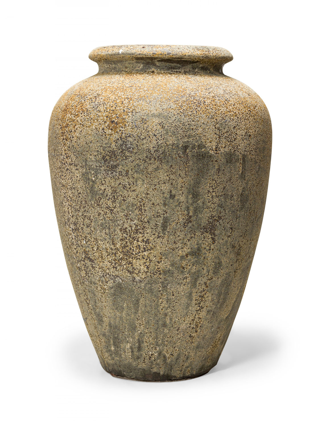 Monumental Cast Iron Outdoor Tapered Urn / Vase with Beige and Brown Patina