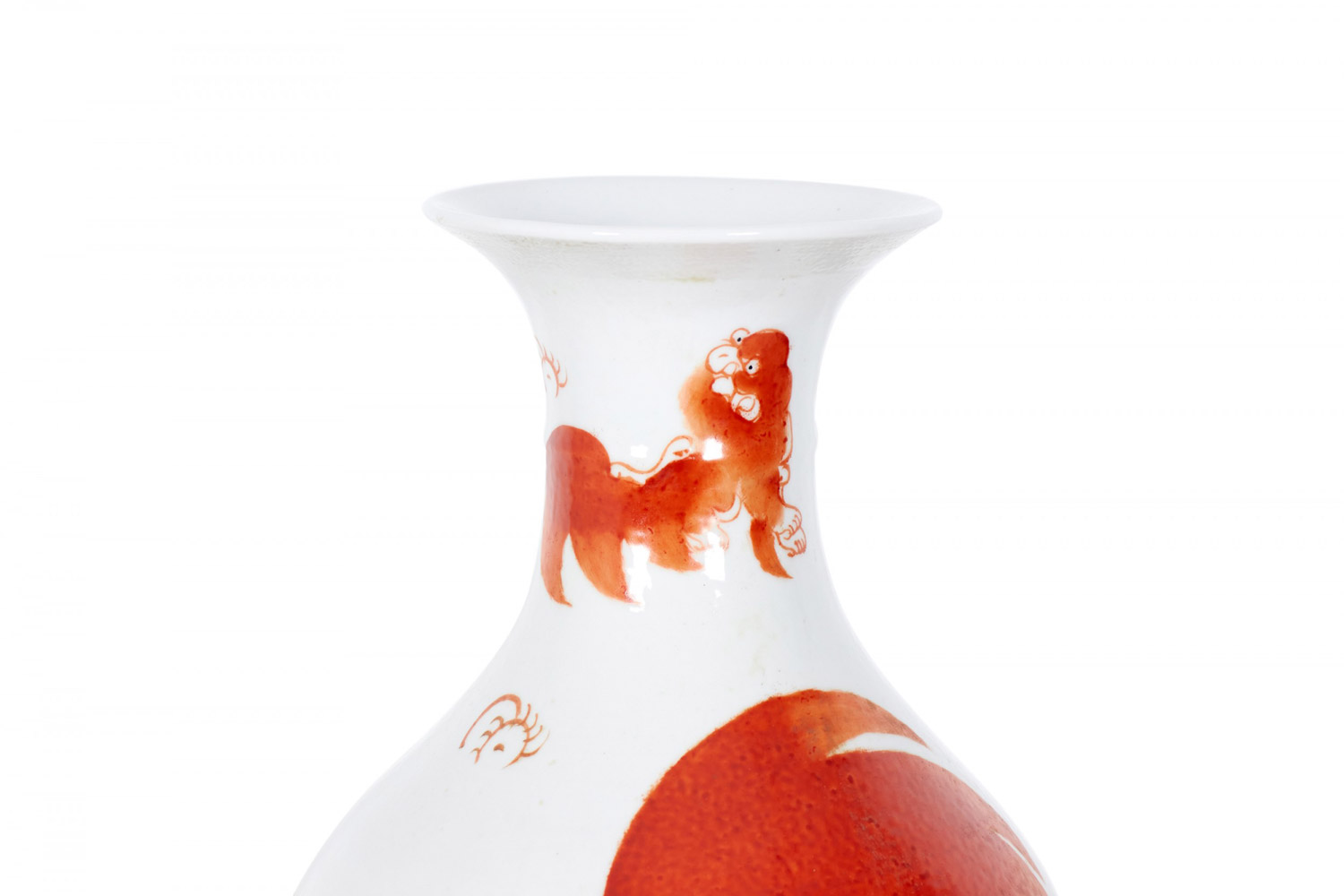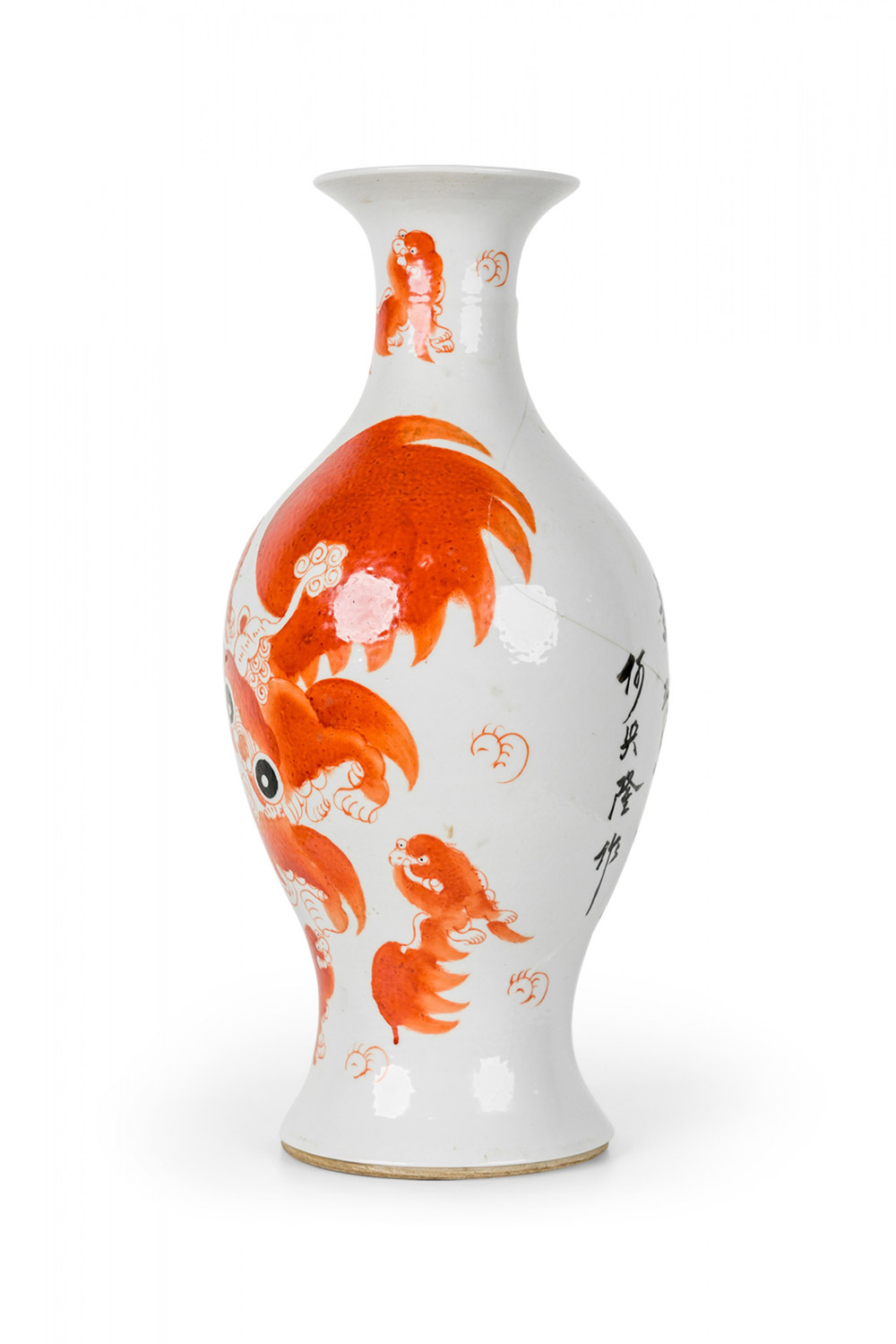 Antique Chinese Urn Shaped Orange Foo Dog Design Porcelain Vases