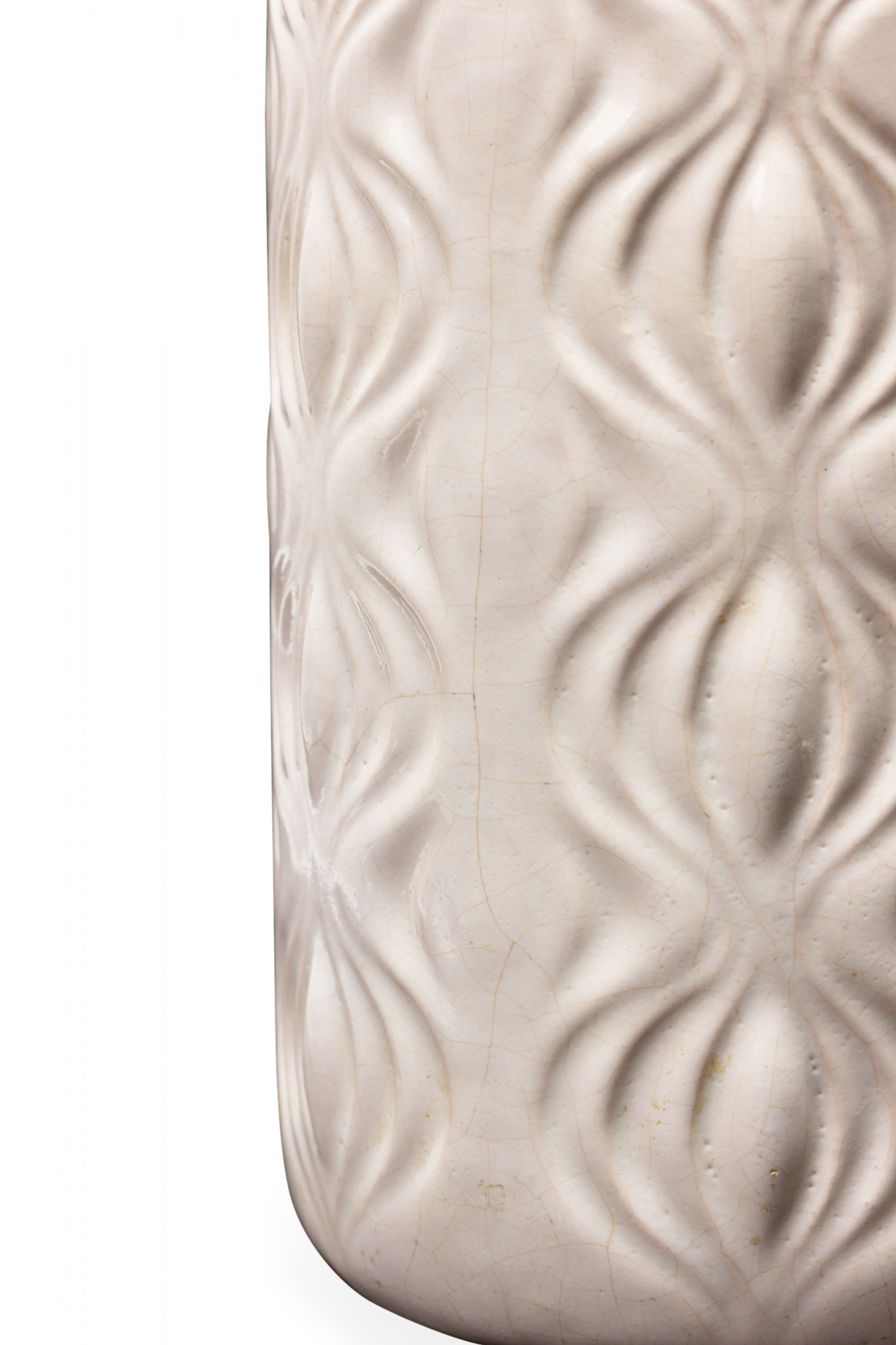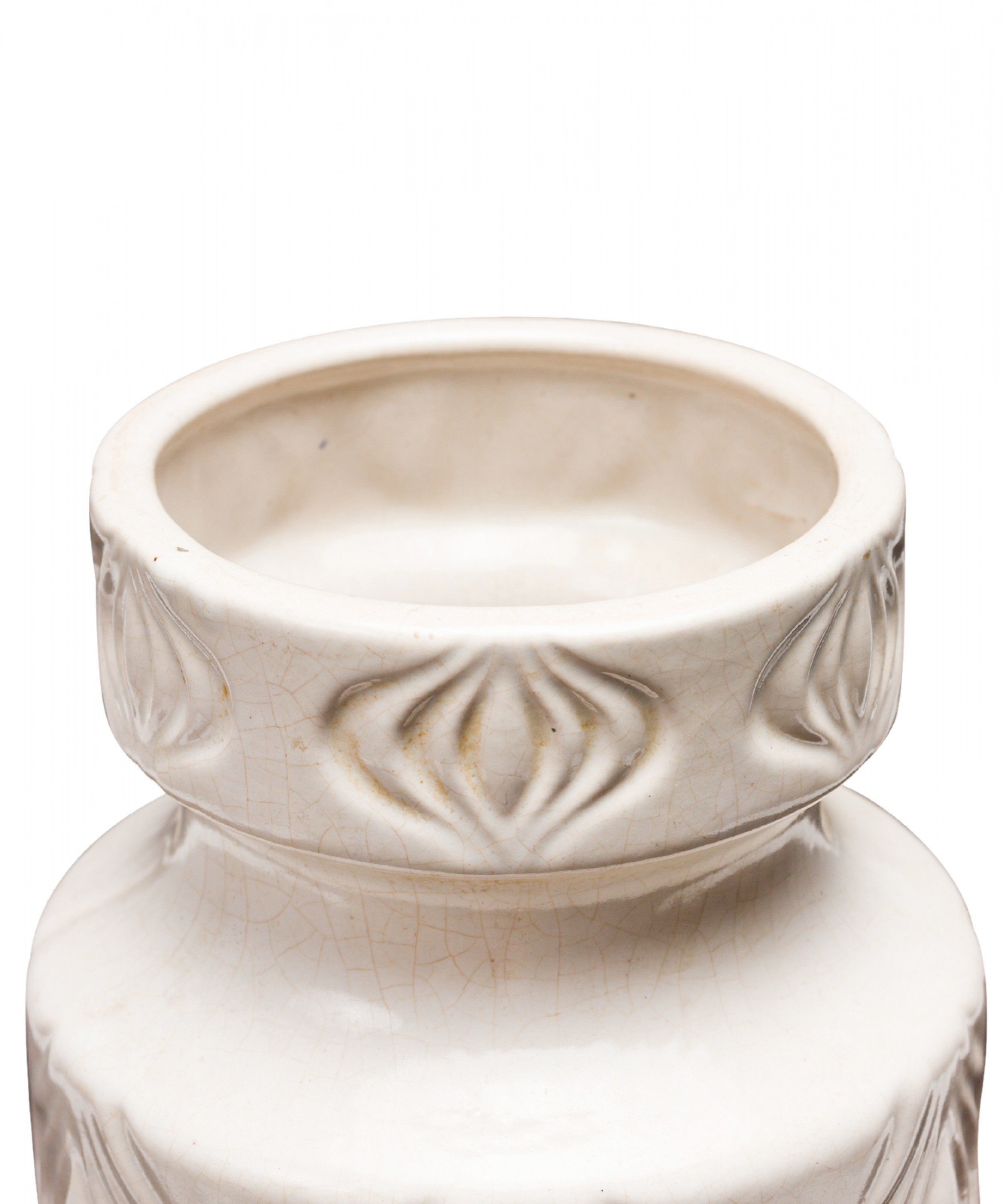 West German Mid-Century white ceramic vase with an incised vertical onion-shaped "Amsterdam" pattern. (SCHEURICH, mark on bottom, W. GERMANY 285-23)