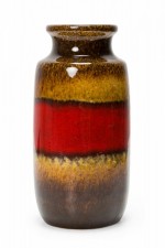 Scheurich West German Mid-Century Red Band and Brown Glazed Urn Form Ceramic Vase