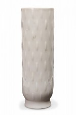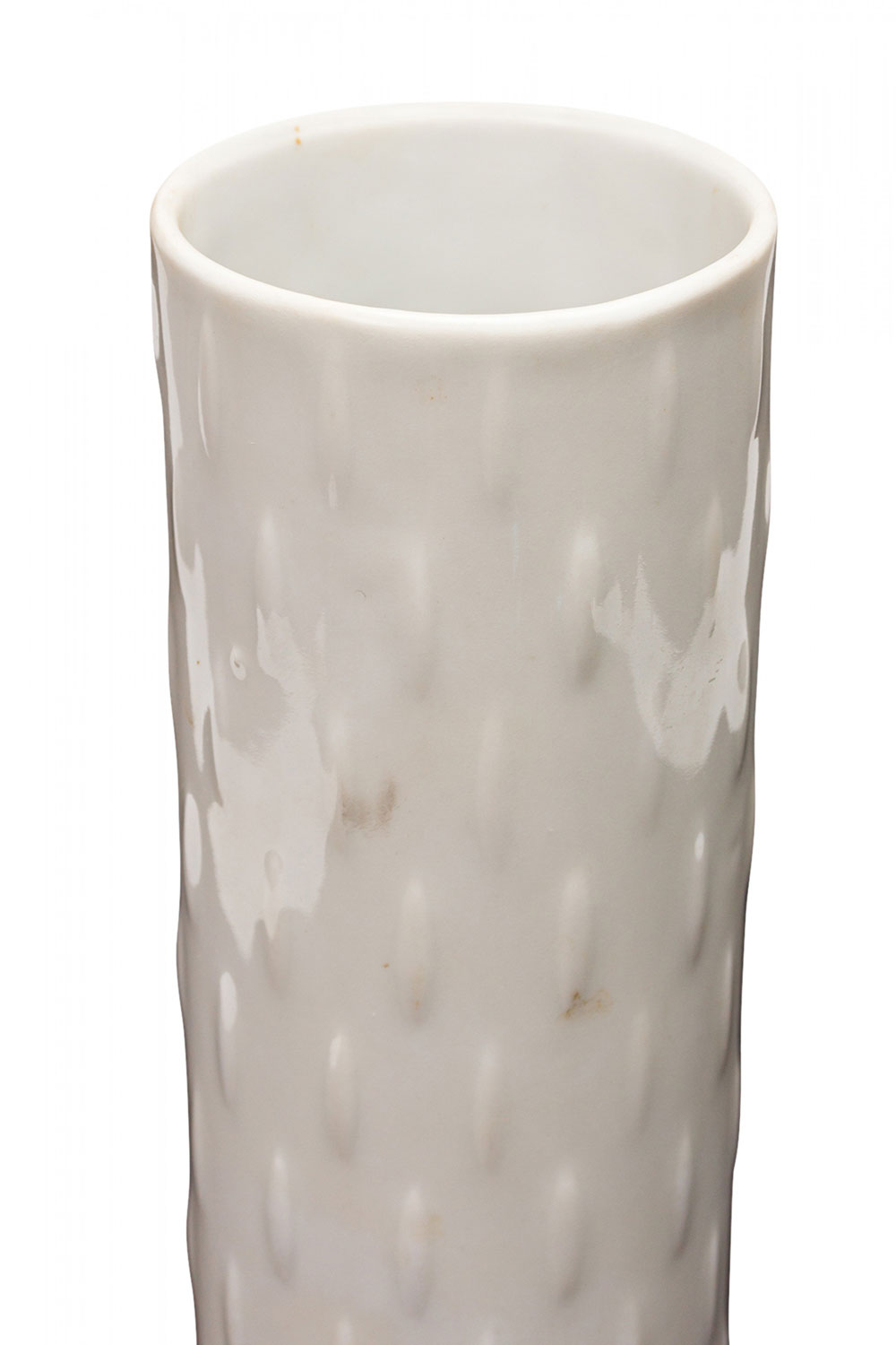 Bavarian German Mid-Century white porcelain cylindrical-form vase with a vertical raised dashed line pattern. (mark on bottom, SHUMANN ARZBERG BAVARIA GERMANY)