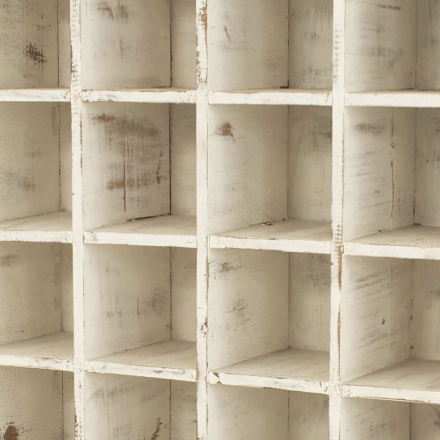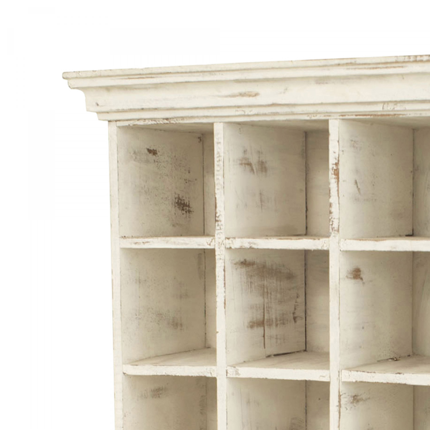 American Victorian Country antique white painted apothecary-style cabinet with 24 pigeon hole shelves