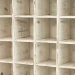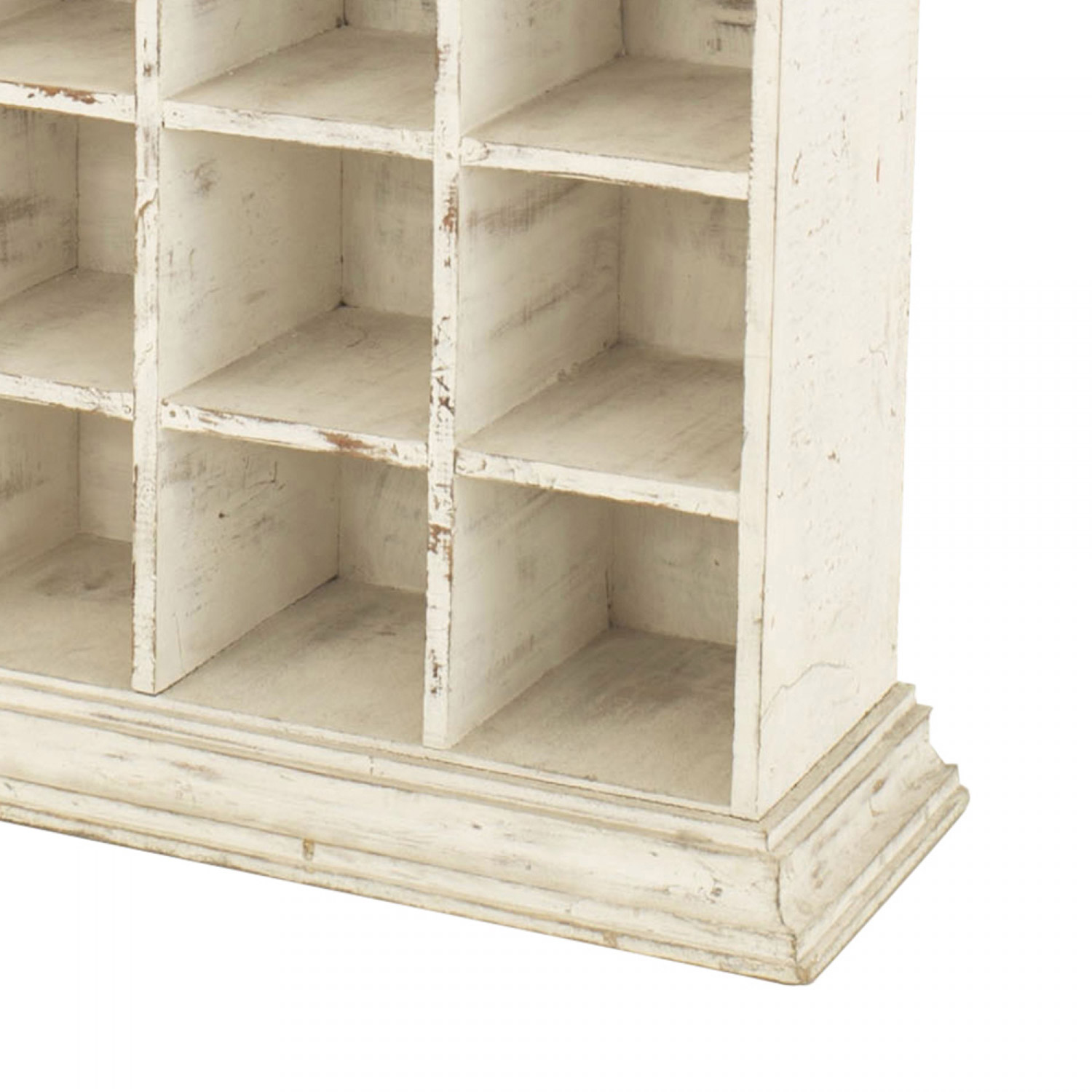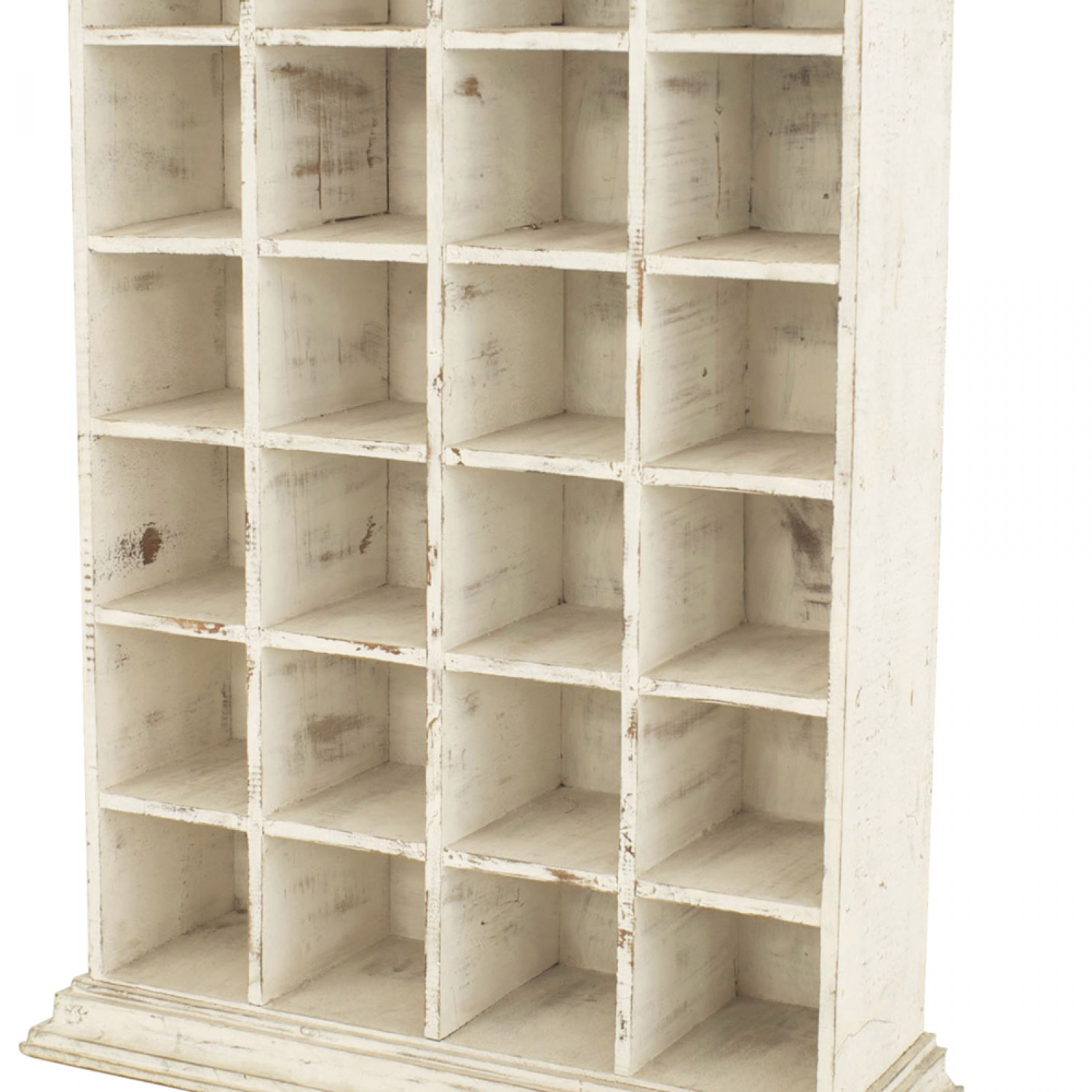 American Victorian Country antique white painted apothecary-style cabinet with 24 pigeon hole shelves.