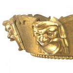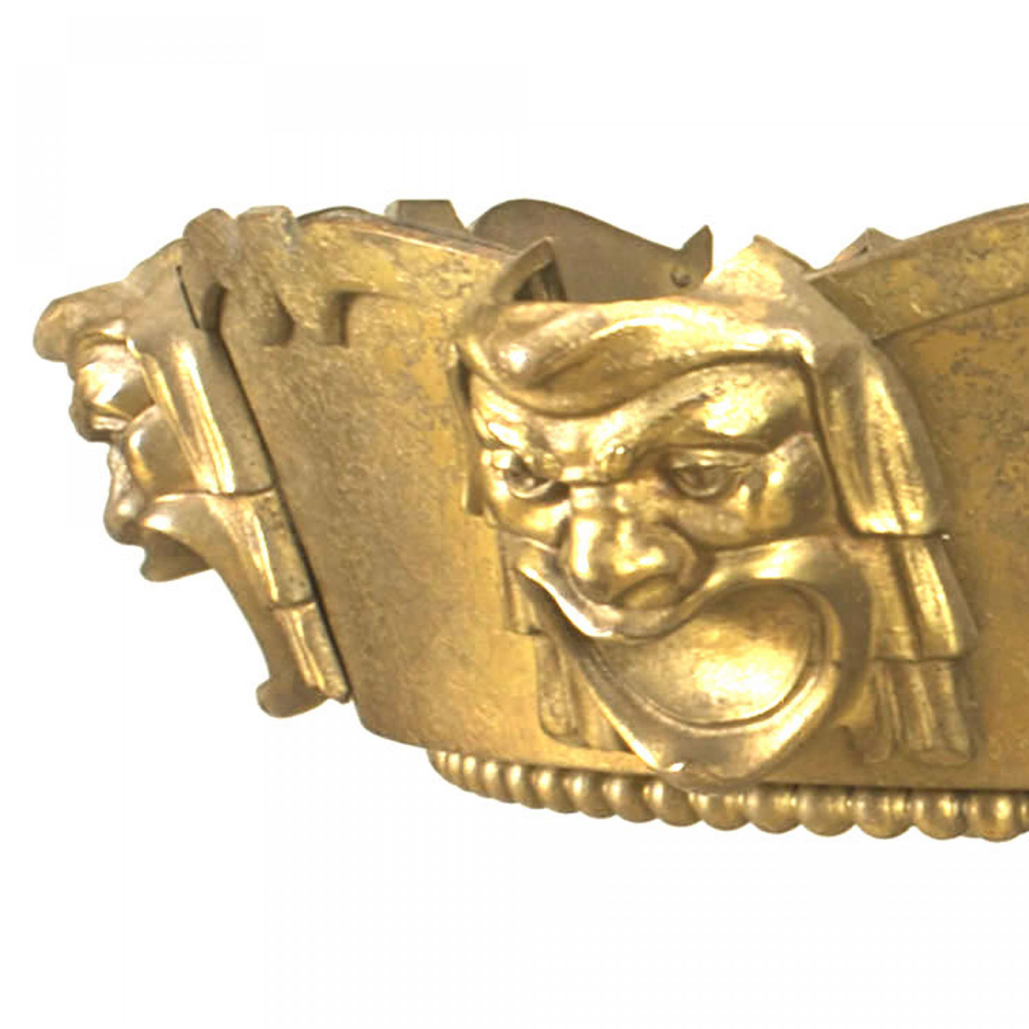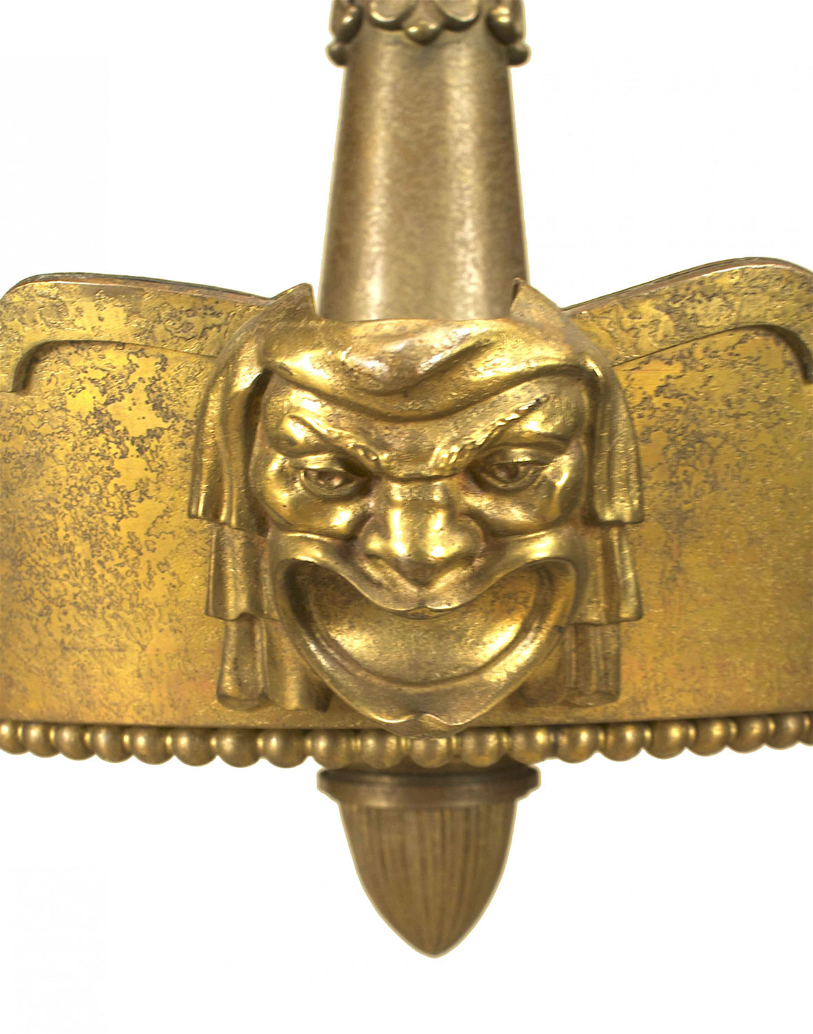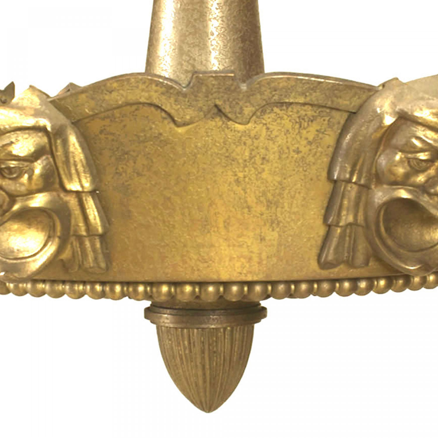 American (1st Quarter 20th Century) bronze round fixture with 6 "comedy" style faces and a beaded bottom centering a finial.