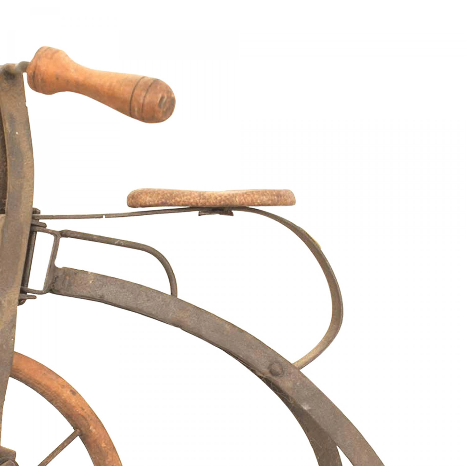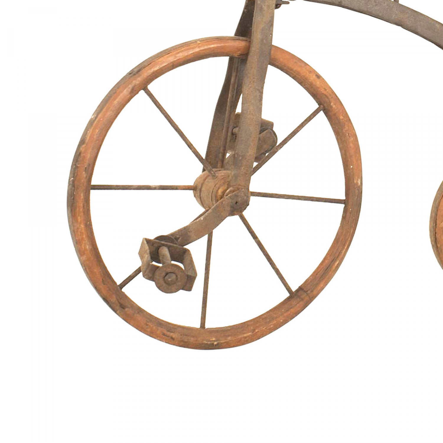 American Country-style (19/20th Century) folk art tricycle model / toy with a metal frame and red painted wooden trim.