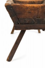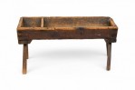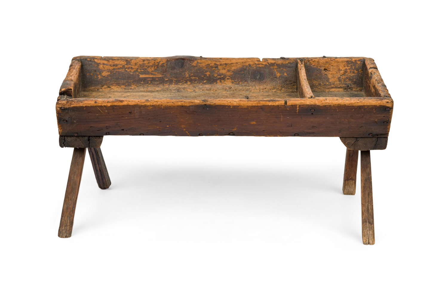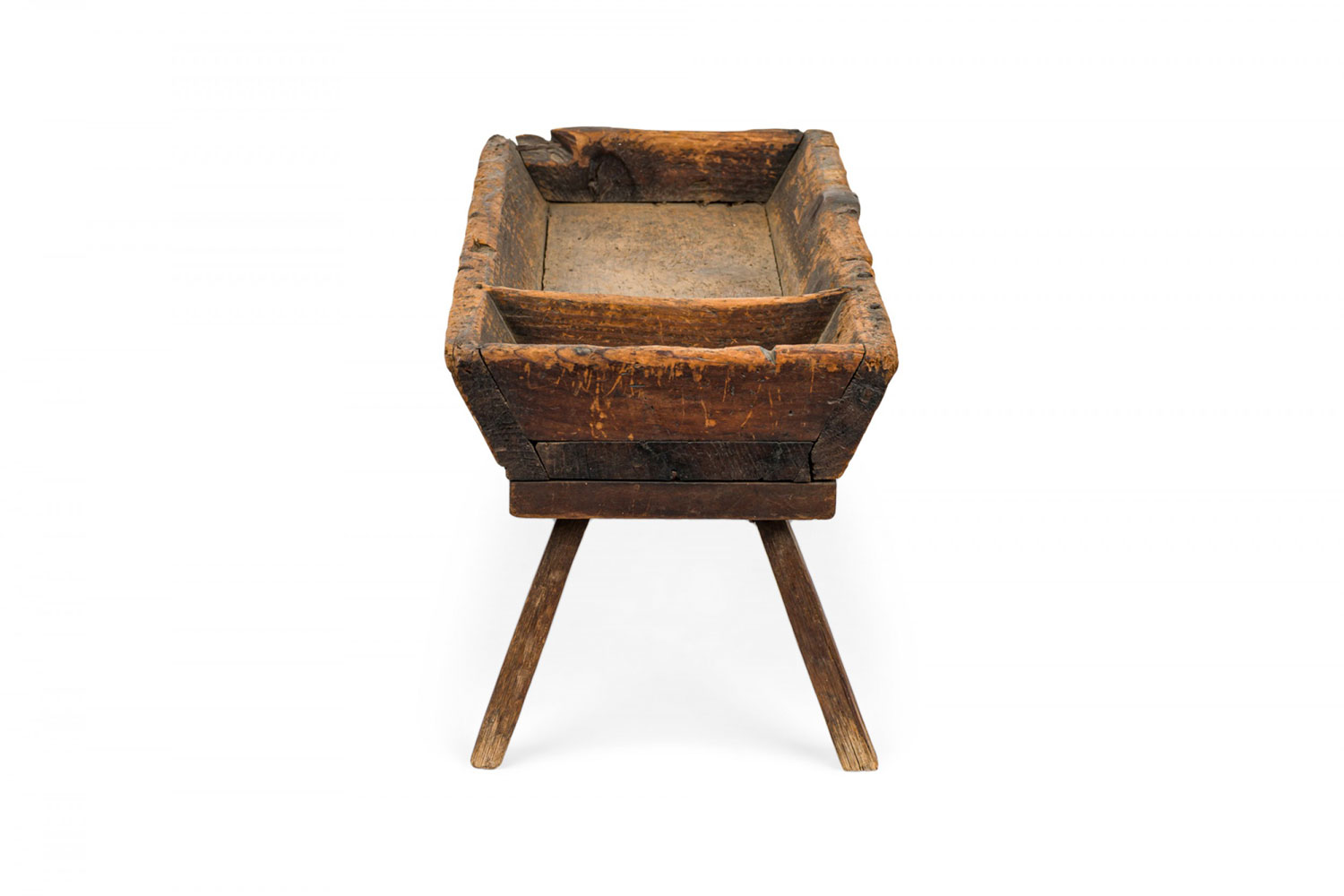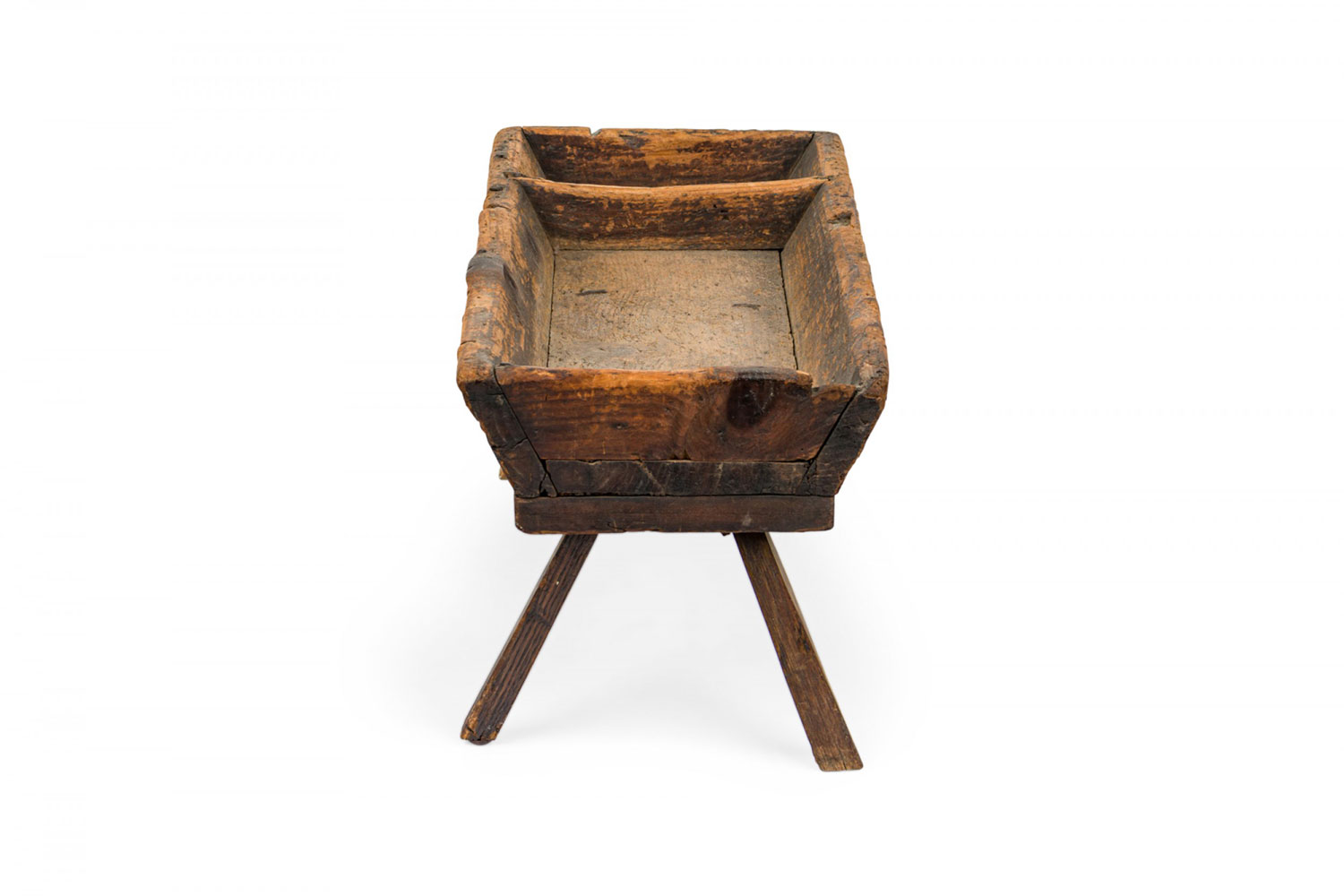 American rustic farmhouse wooden trough with two compartments supported on four legs..