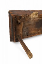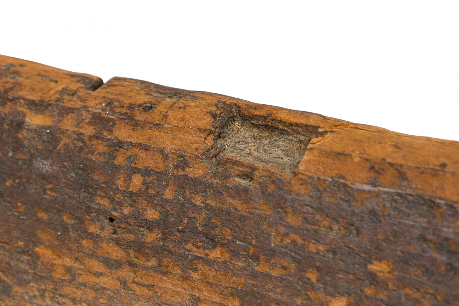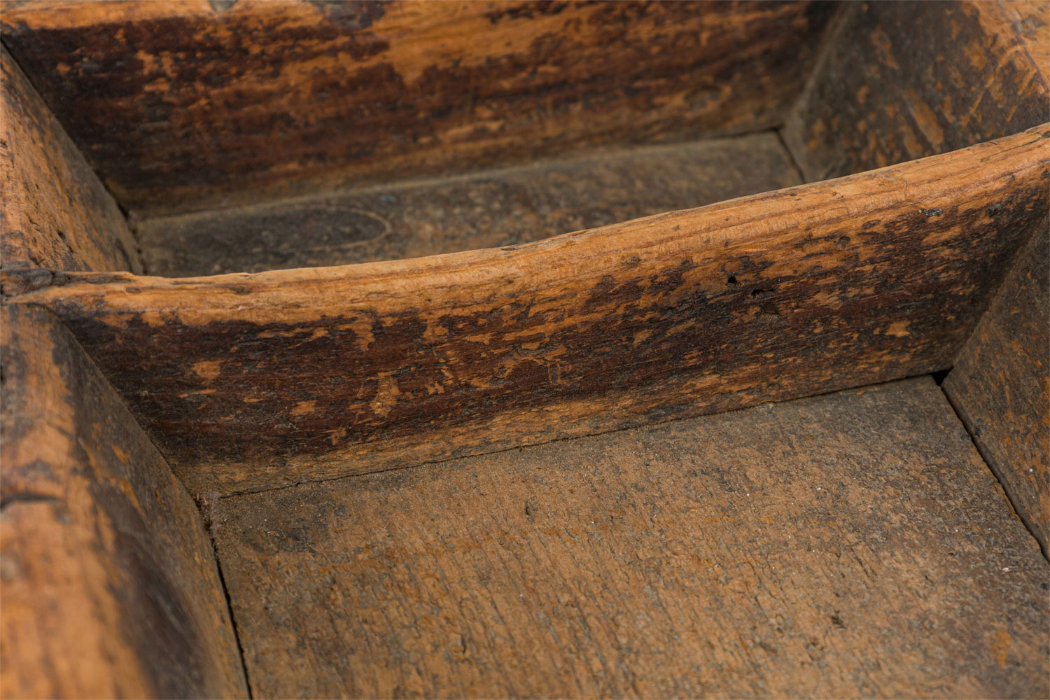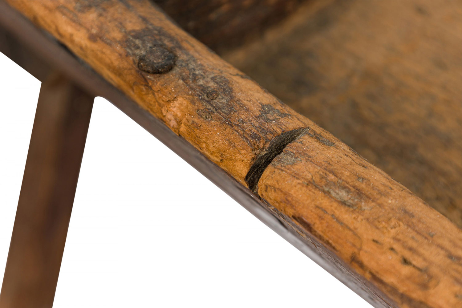 American rustic farmhouse wooden trough with two compartments supported on four legs..