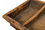 American rustic farmhouse wooden trough with two compartments supported on four legs.