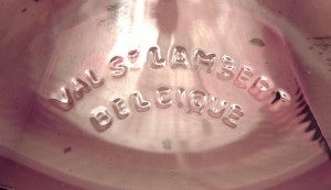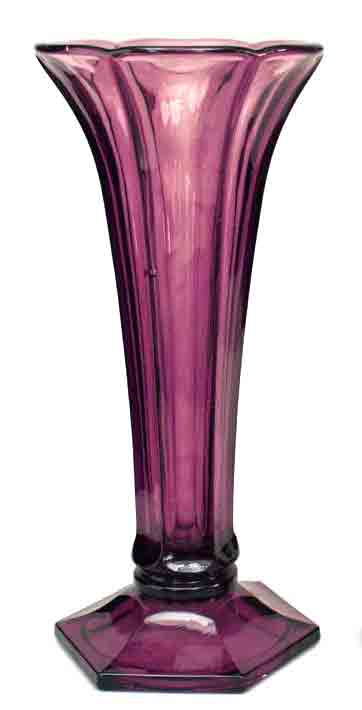 French (Belgium) Art Deco amethyst colored glass six-sided vase with flair tops signed: Val St. Lambert Belgique..