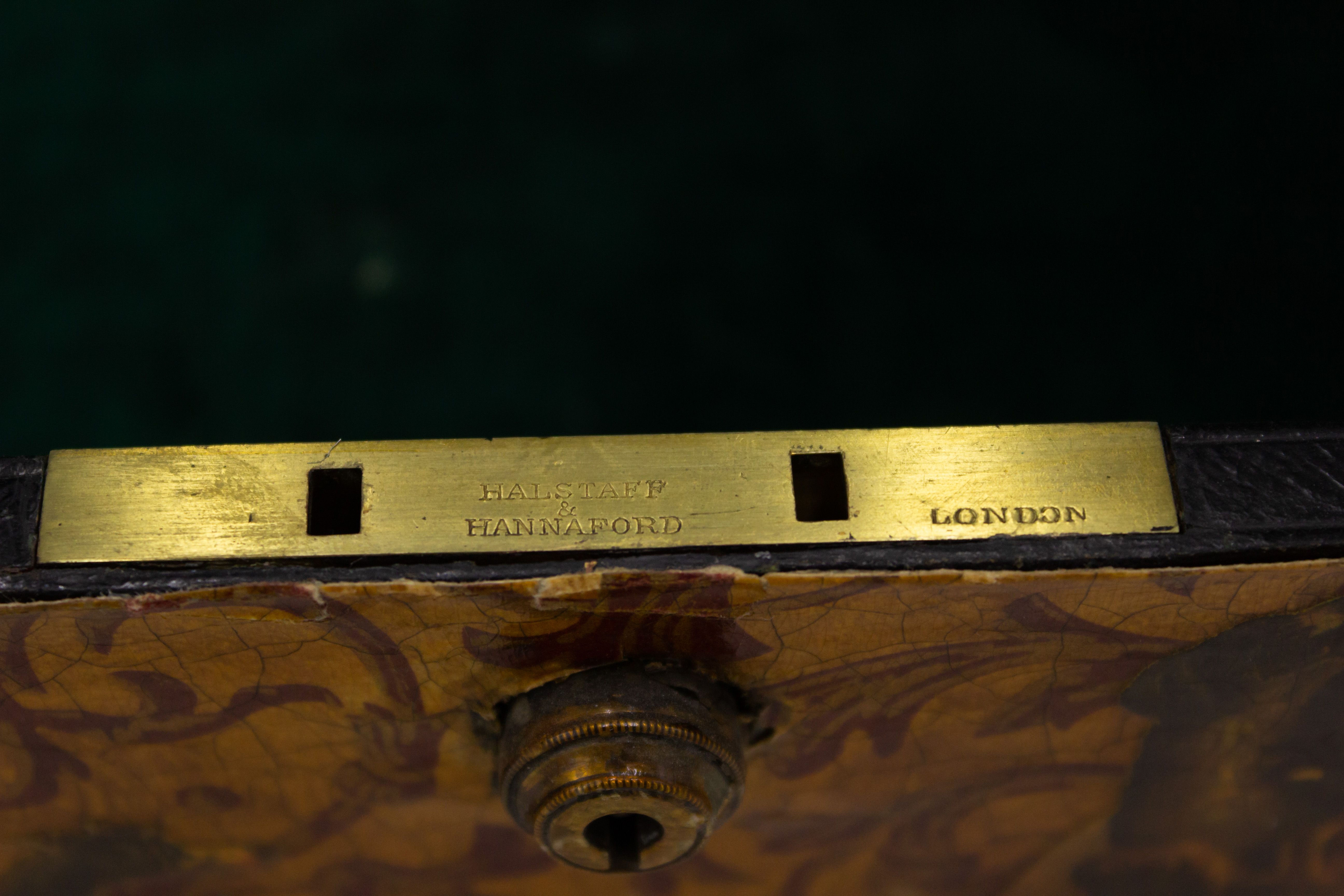 English Victorian-style (20th Century) decoupage decorated box with horse and rider design (signed)