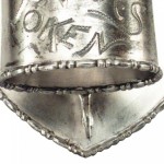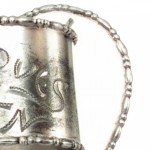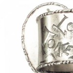 English Victorian silver plate napkin ring with etched "Love Token" on heart shaped base.