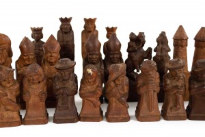 German Continental Hand-Carved Wooden Chess Set
