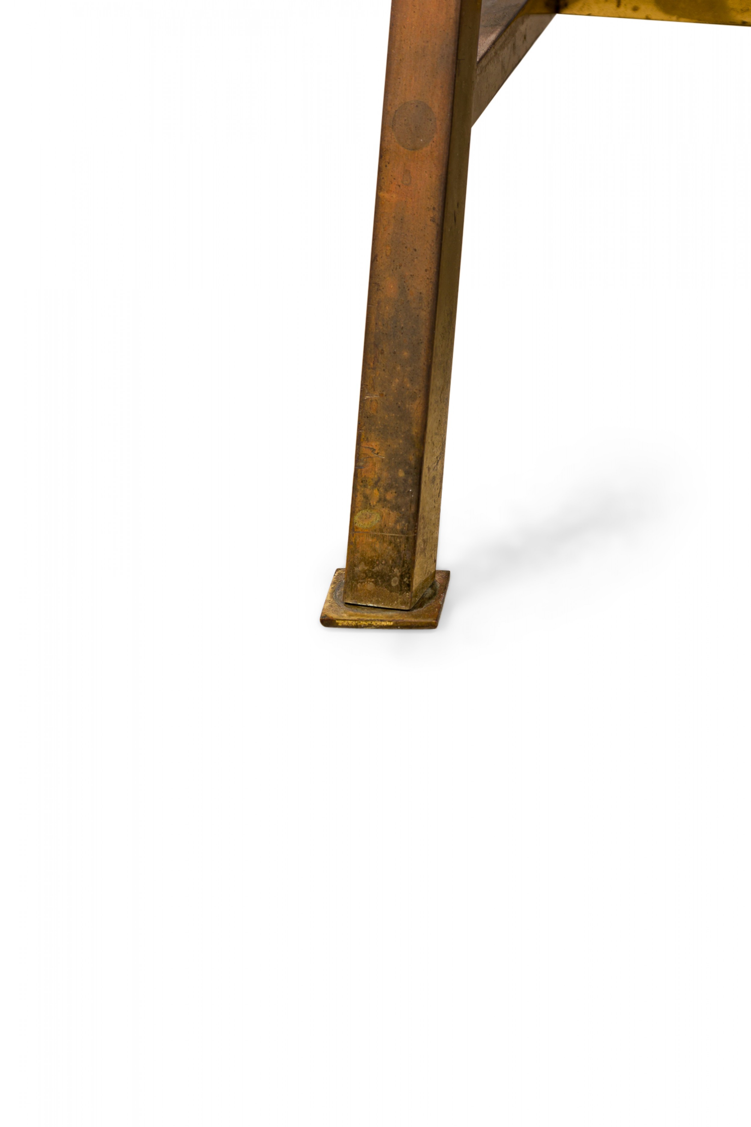 Style: Mid-Century Materials & Techniques: Brass, metal, upholstered, velour Category: Seating Condition: Brass legs are tarnished. Good; Wear consistent with age and use