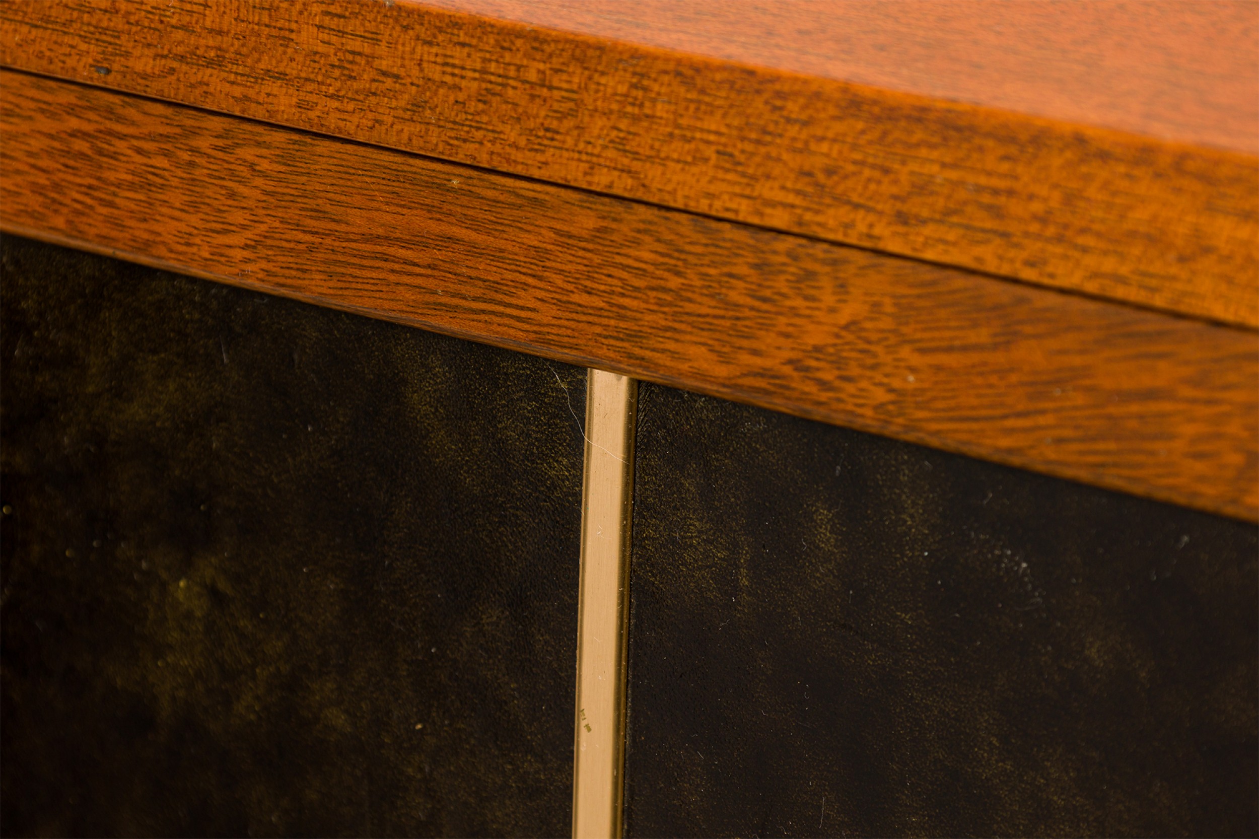 Style: Mid-Century Materials & Techniques: Brass, metal, wood Category: Bedroom Condition: Wiring and light fixtures in cabinets are in disrepair. Good; Minor losses