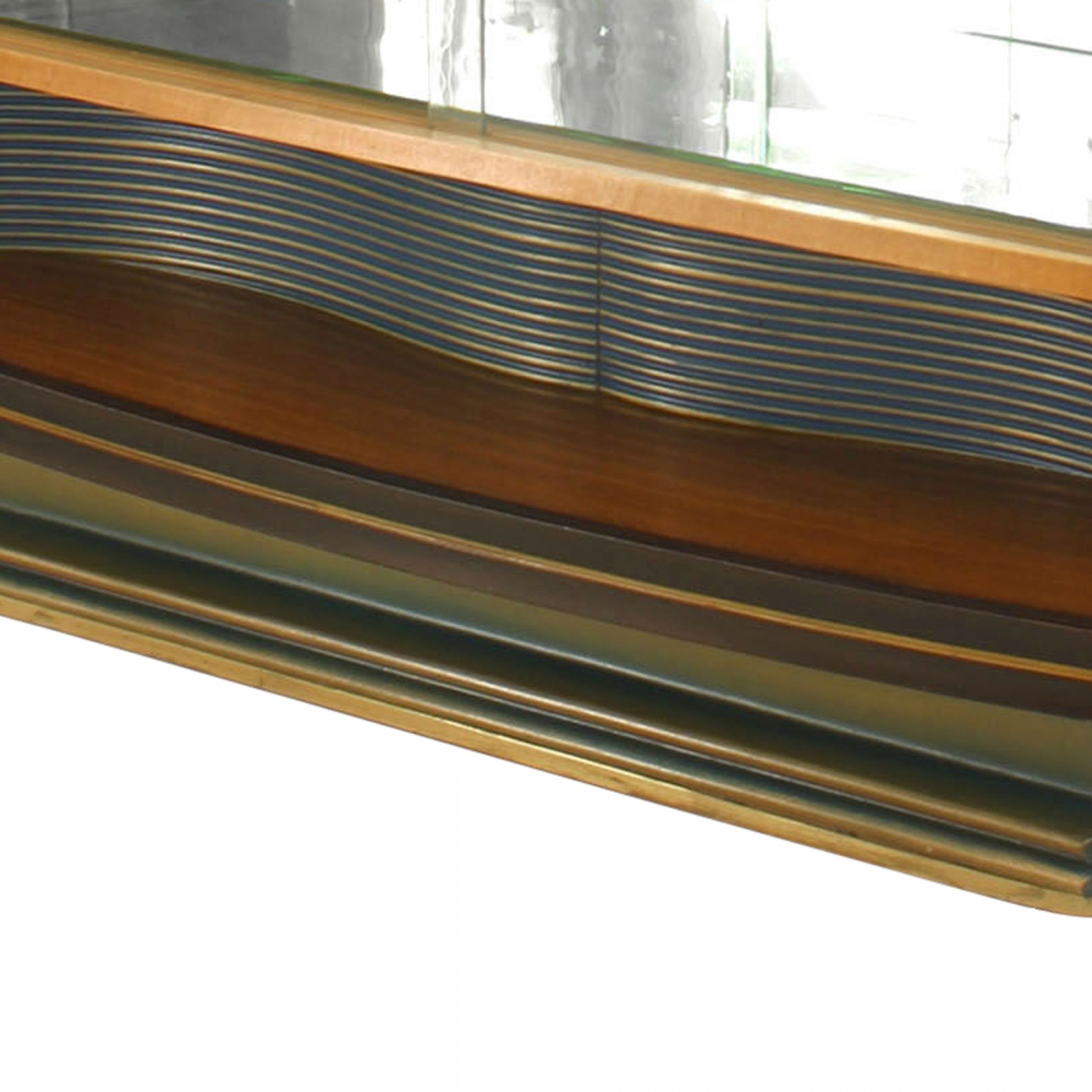 Italian Mid-Century (1950s) walnut and maple vitrine cabinet with a pair of sliding glass doors and 2 interior shelves with a blue glass top (Attributed to VITTORIO DASSI) (Enzo Ferrari)