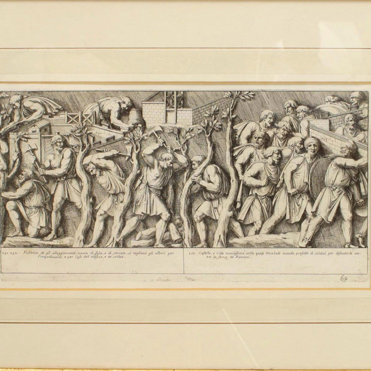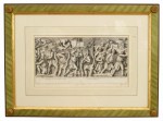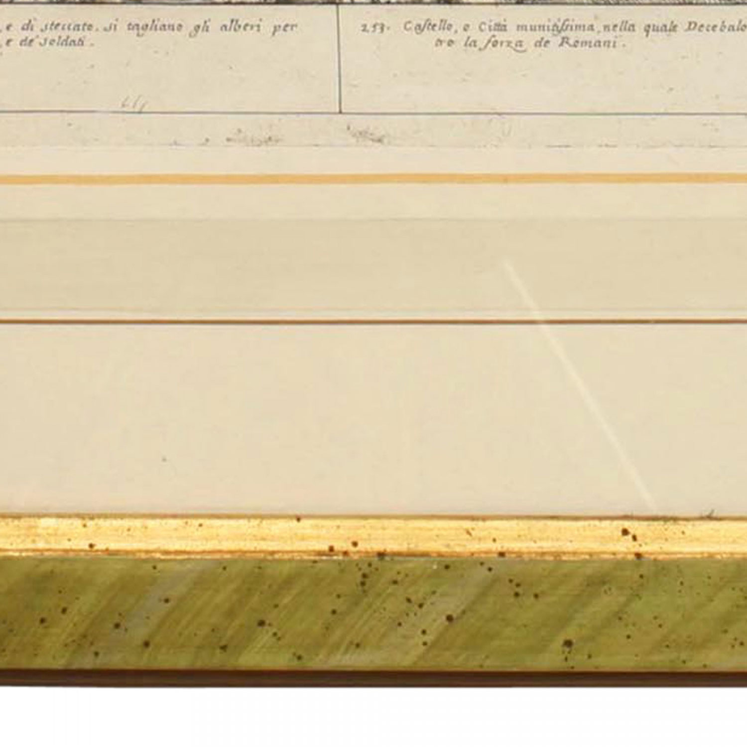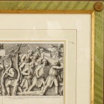 Italian Neo-classic style prints of various ancient Roman historical scenes matted in a green painted and gold trim frame (part of a set of 15; associated pieces: 040102A-O).