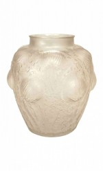 Pair of French Art Deco Frosted Glass Domremy Lalique Vases