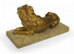 Pair of Italian Renaissance Small Gilt Bronze Lions