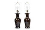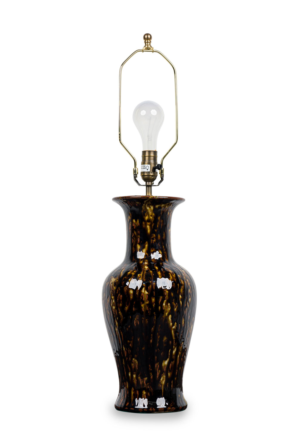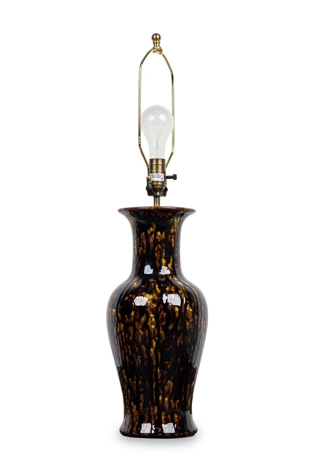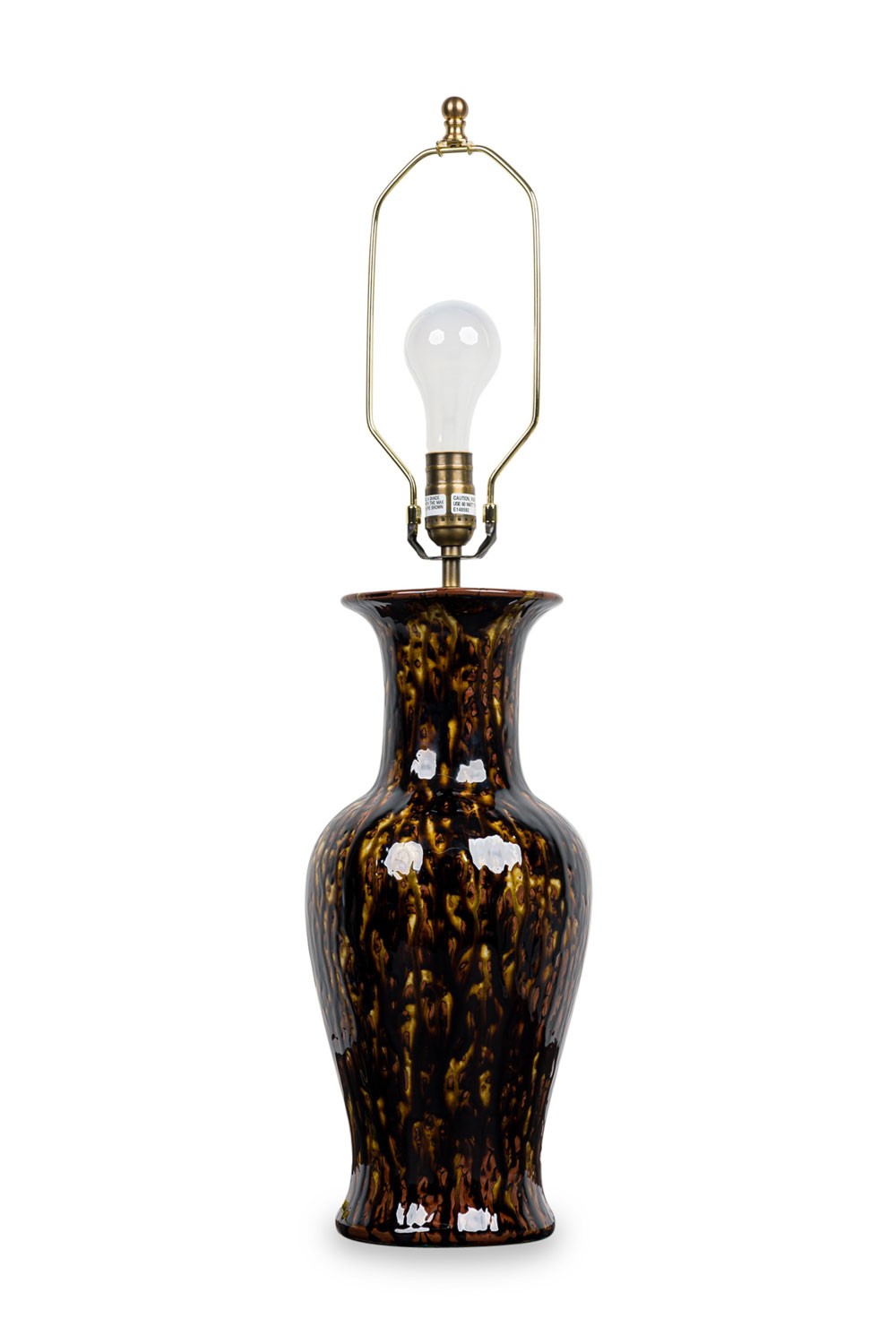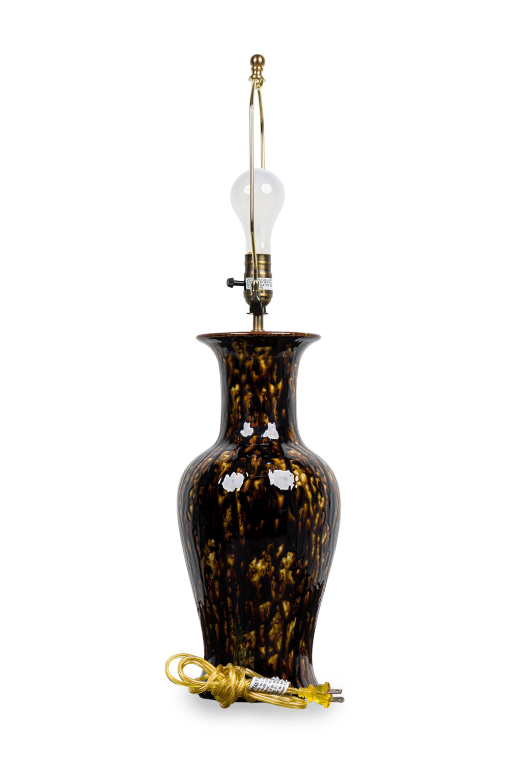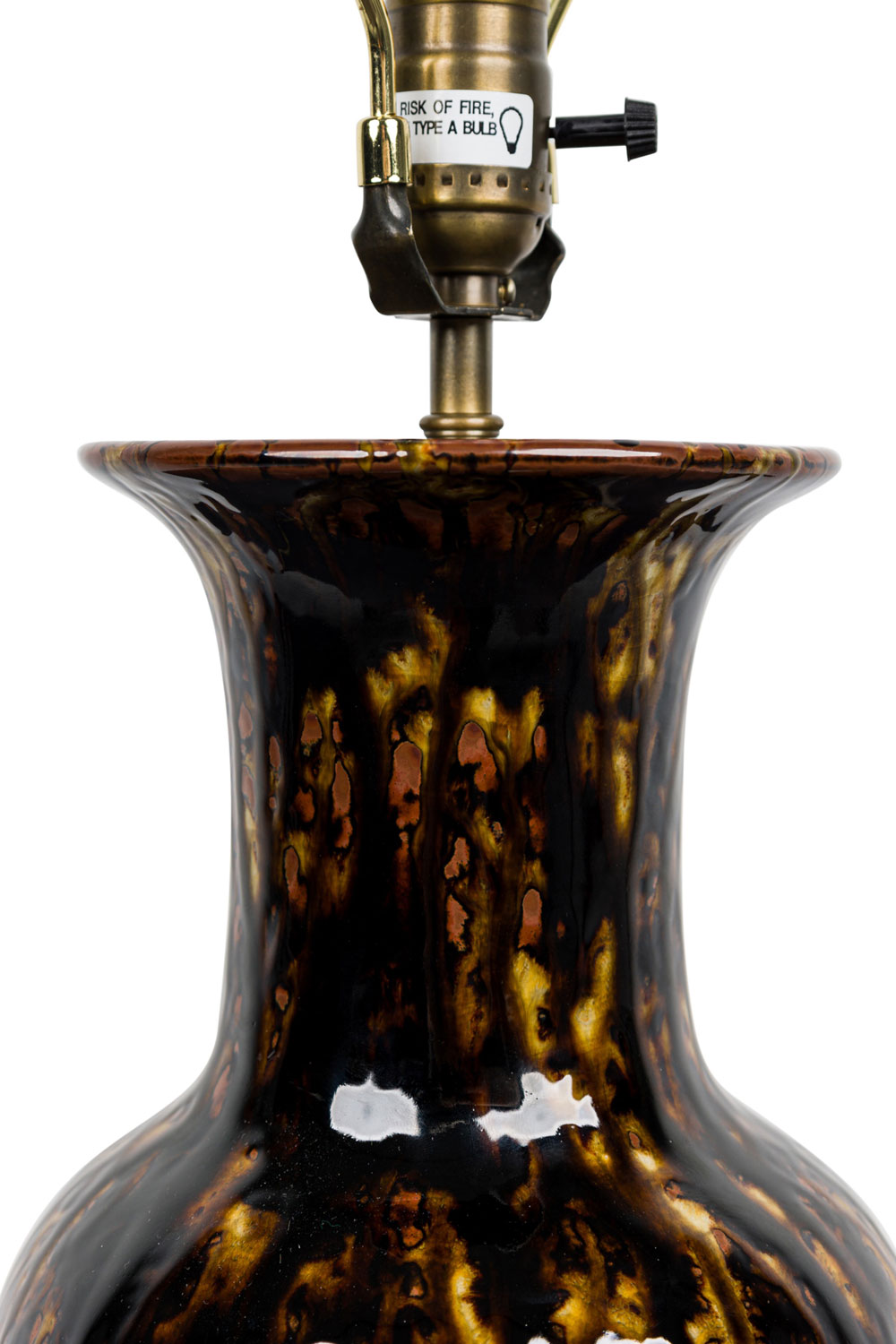 PAIR of French Contemporary ceramic table lamps with a shiny tortoise shell finish (PRICED AS PAIR)
