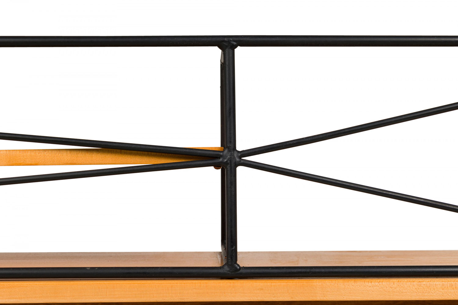 Mid-Century American full-size bookcase / headboard constructed of maple wood with black enameled steel wire rod shelving (Planner Group). (PAUL MCCOBB FOR WINCHENDON FURNITURE COMPANY)