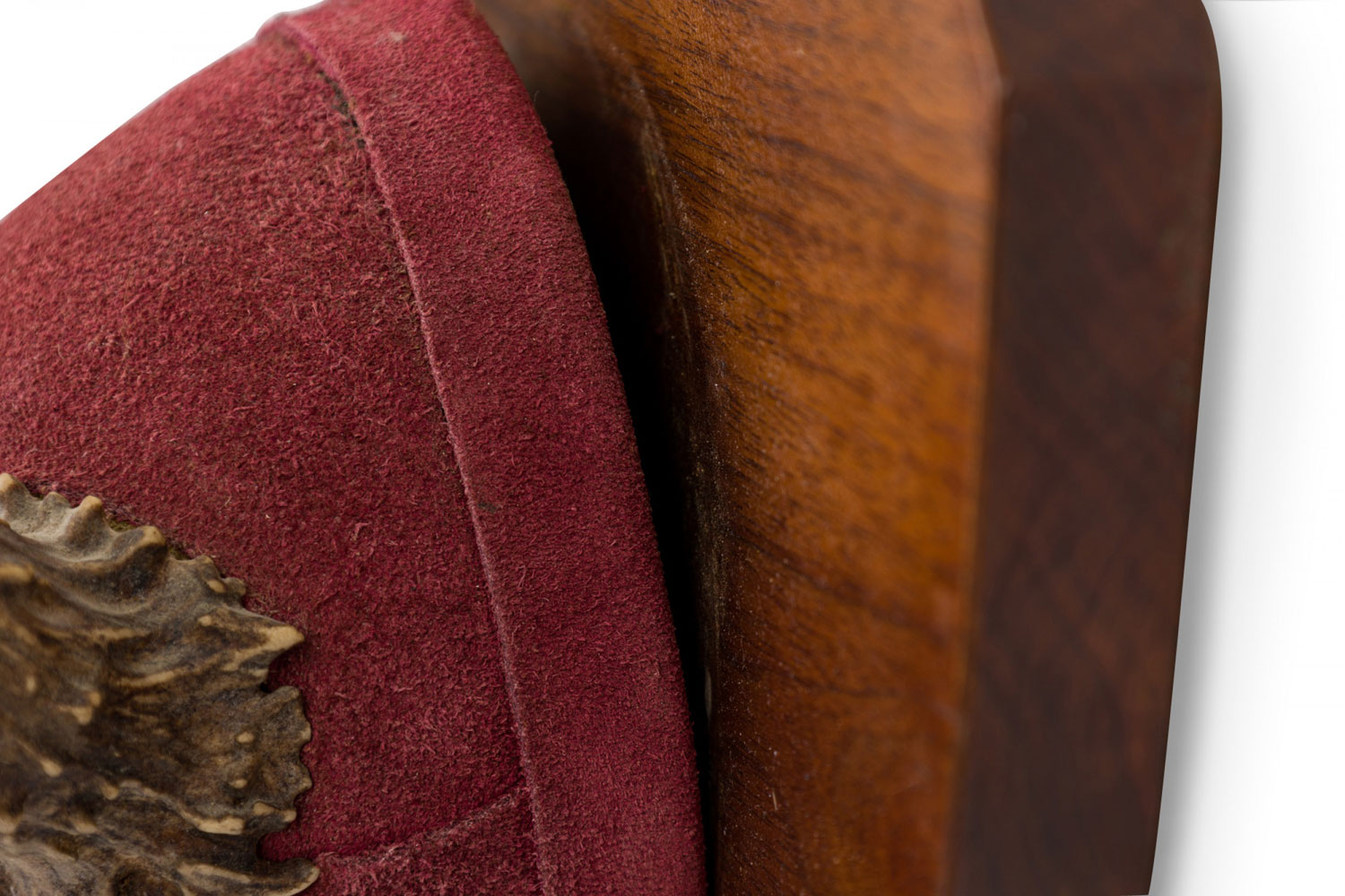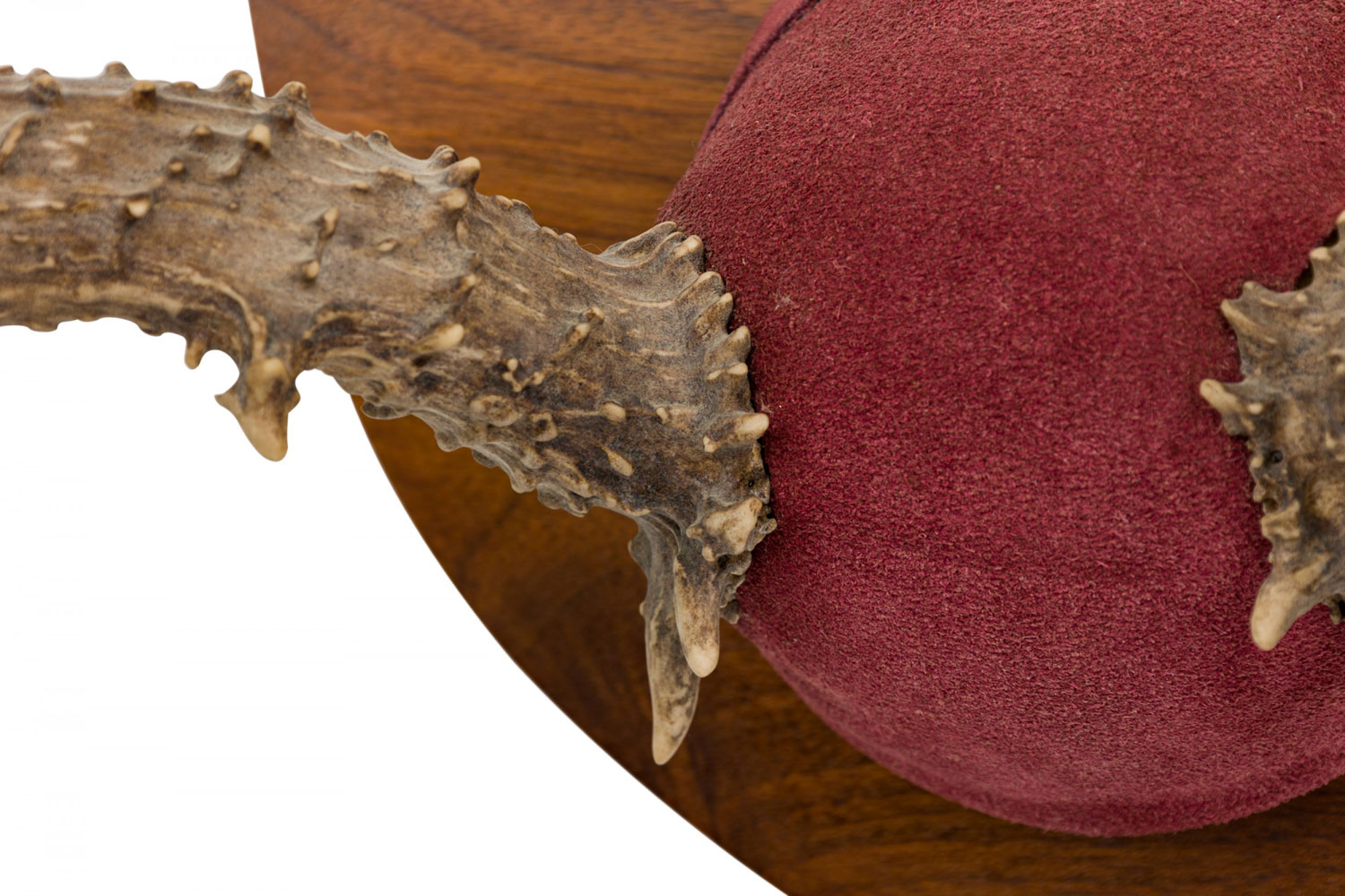 Rustic Decorative Deer Antler and Red Suede Wall Plaque