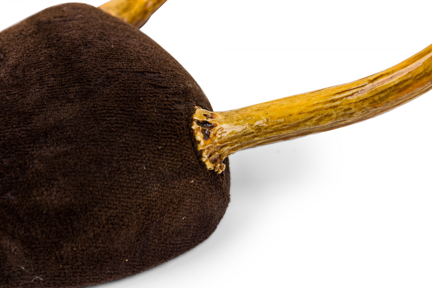 Style: Rustic Materials & Techniques: Horn, velvet, wood Category: Sporting/Gaming Good; Wear consistent with age and use