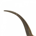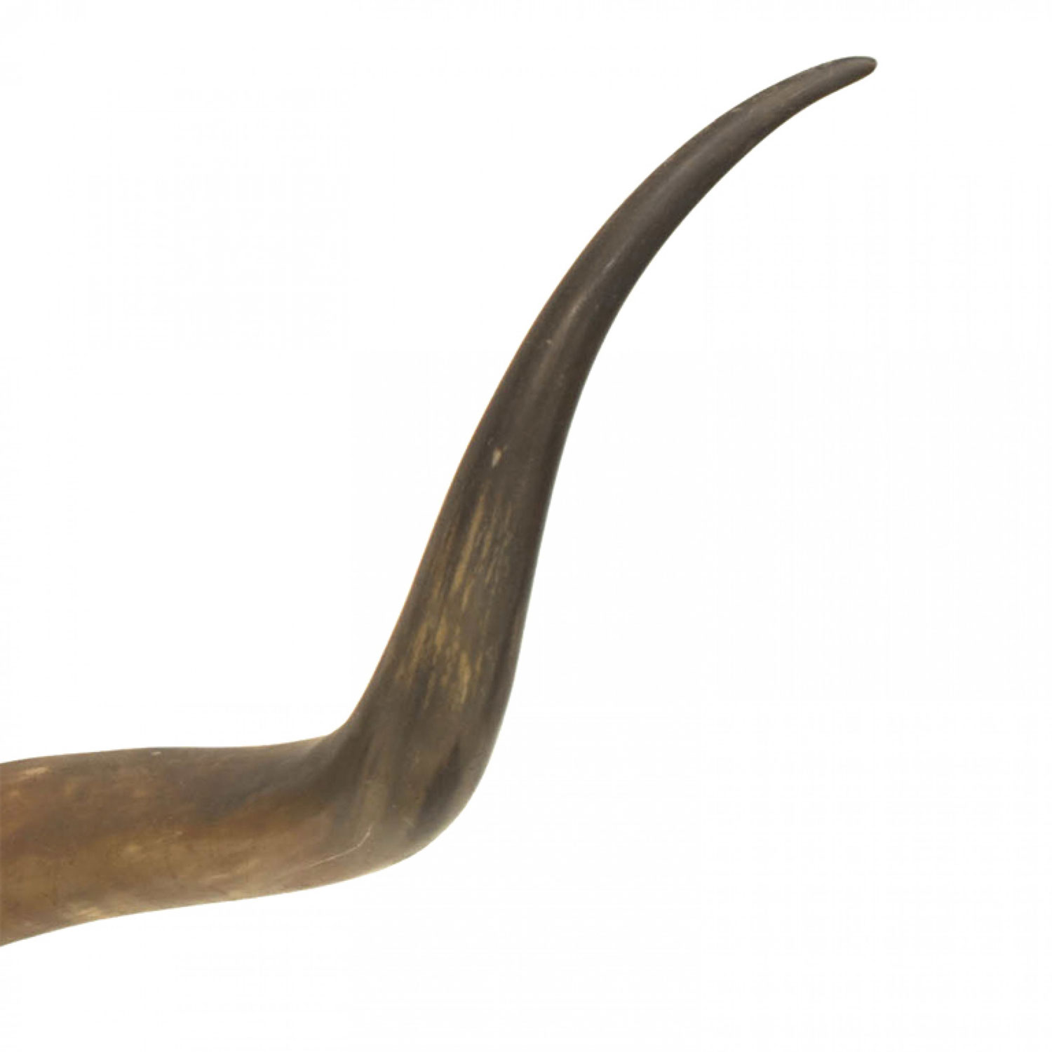 Rustic style American long horn steer wall plaque mounted on a mahogany keystone shaped backing.