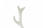 Rustic mounted buckhead wall hanging sculpture made of textured resin with extending horns.
