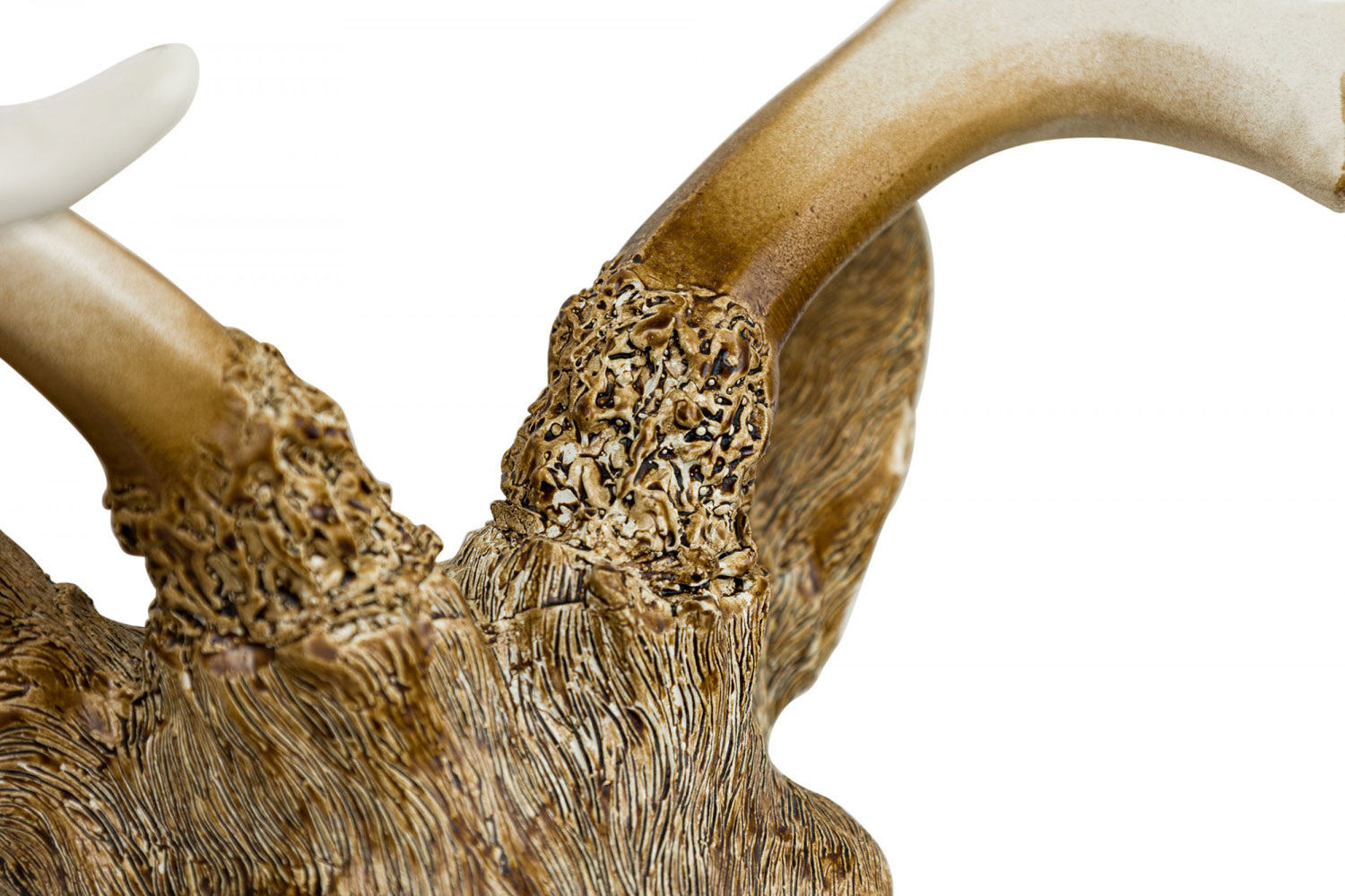 Rustic mounted buckhead wall hanging sculpture made of textured resin with extending horns..