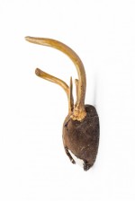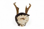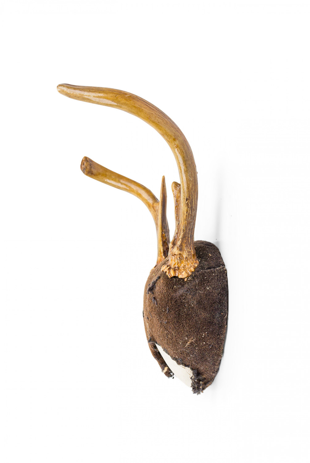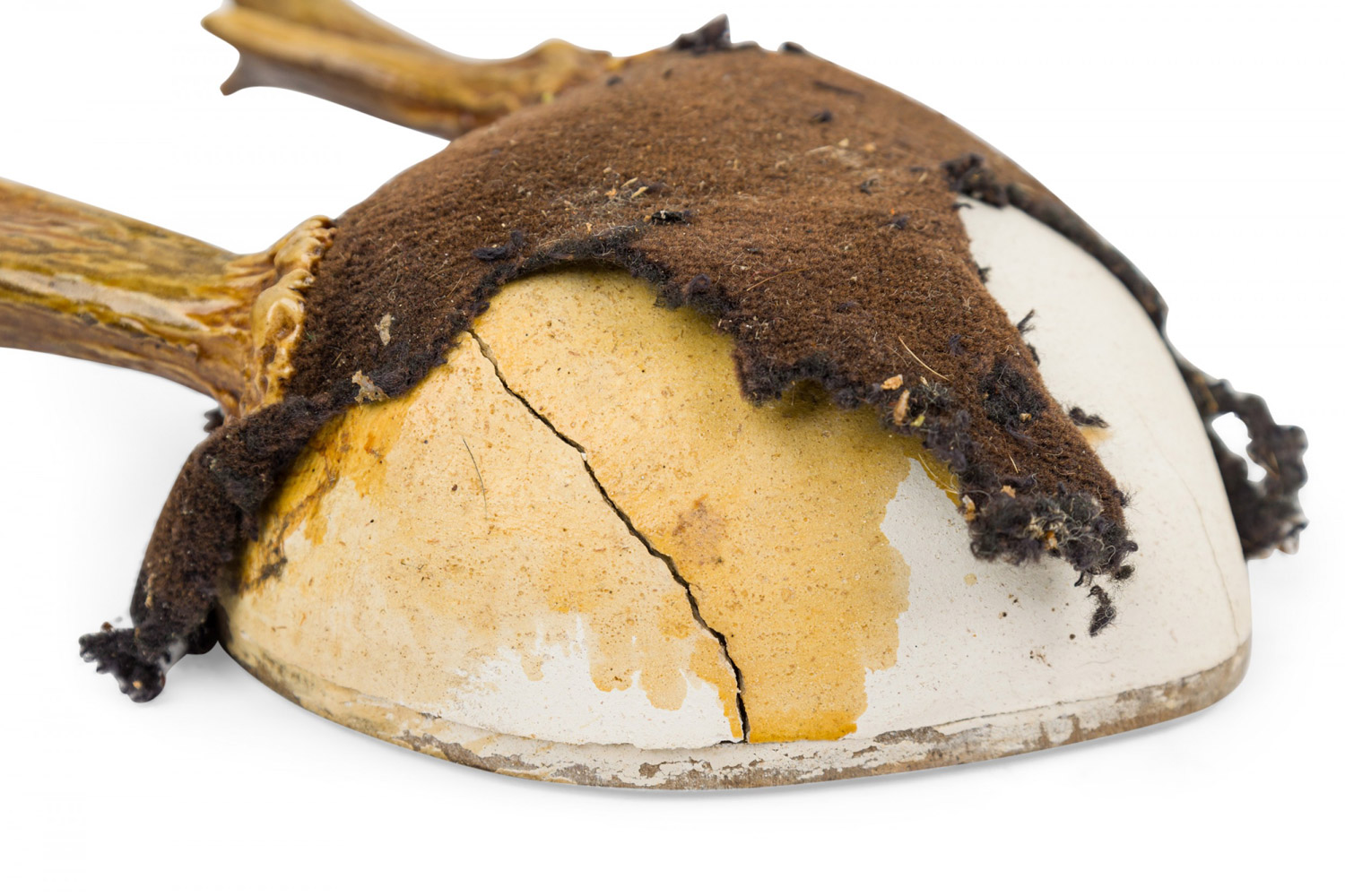 Style: Rustic Materials & Techniques: Horn, velvet, wood Category: Sporting/Gaming Good; Wear consistent with age and use