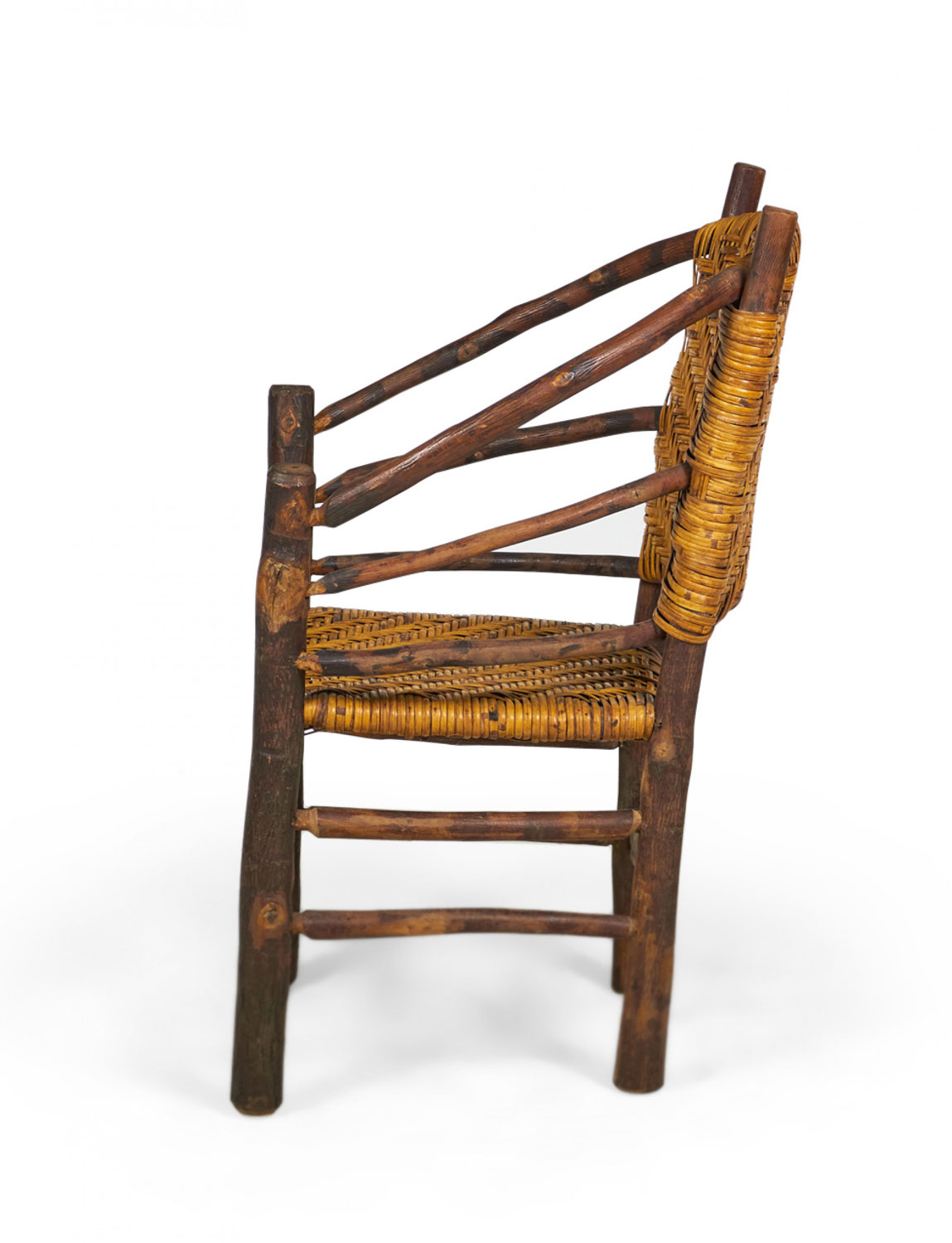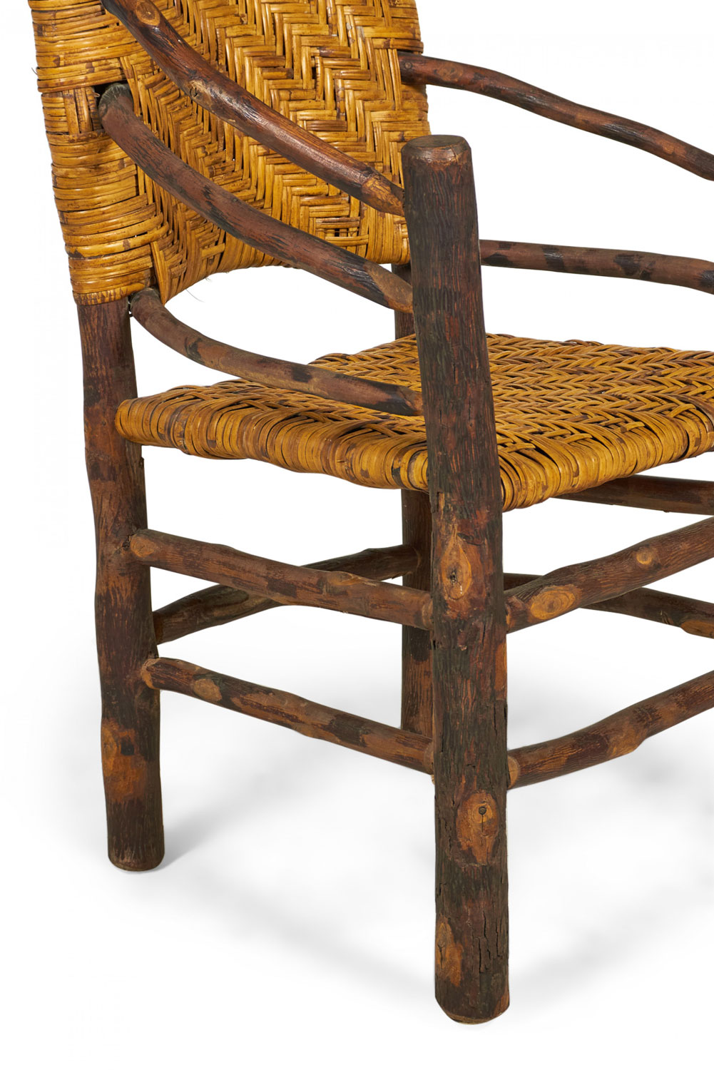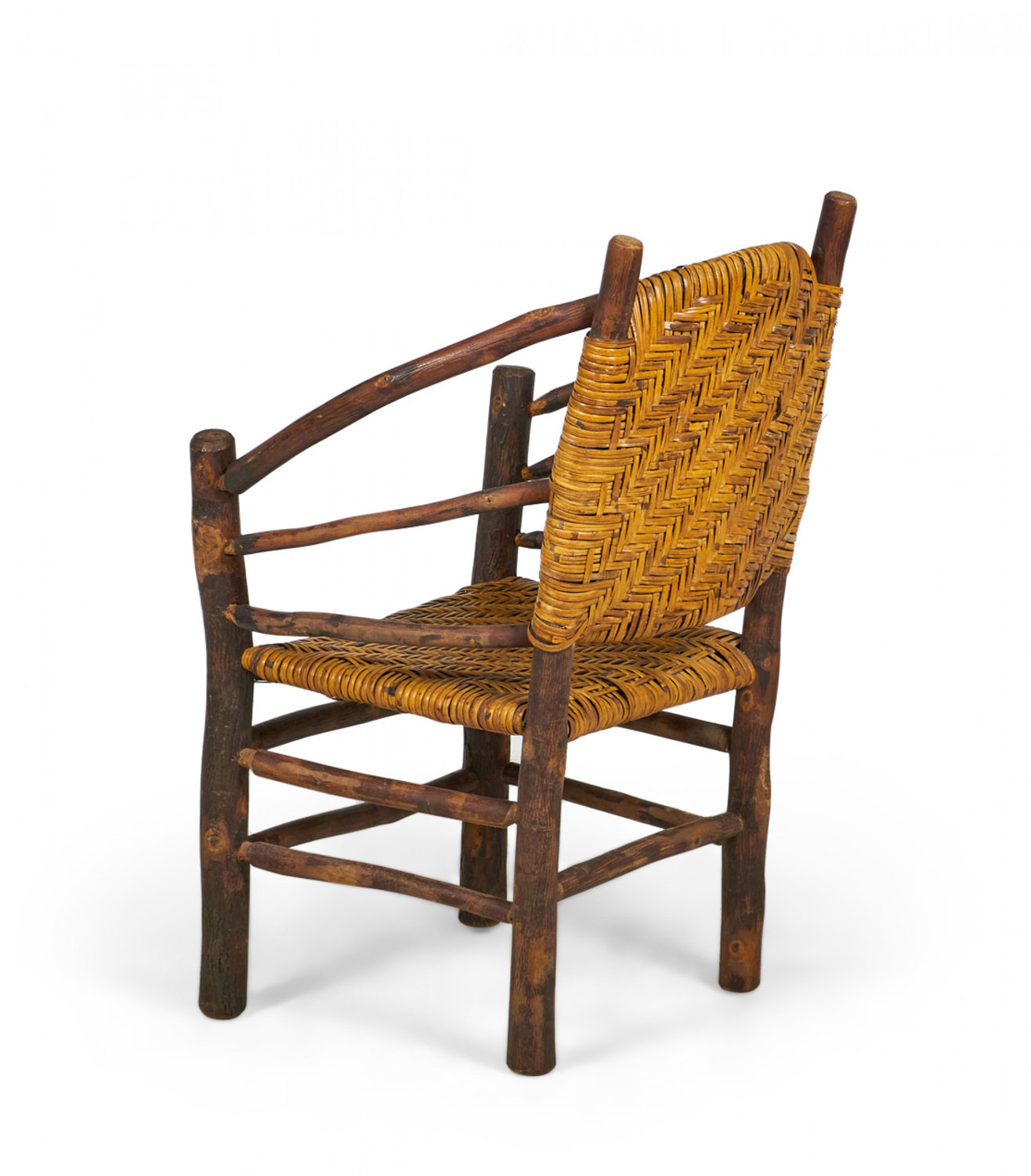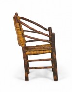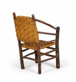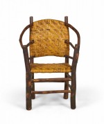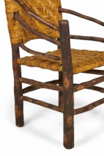 SET of 4 Rustic American Old Hickory style (1930s) arm chairs with a continuous rounded back with a woven seat and back (PRICED AS SET)