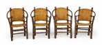 SET of 4 Rustic American Old Hickory style (1930s) arm chairs with a continuous rounded back with a woven seat and back (PRICED AS SET).