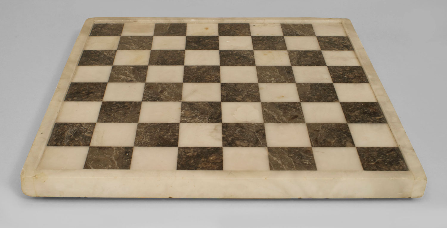 Italian Neo-classic style (19/20th Cent) white and black alabaster chess board.