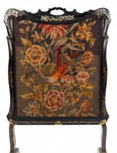 English Victorian Papier-Mache Lacquered Fire Screen
