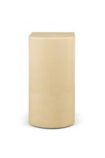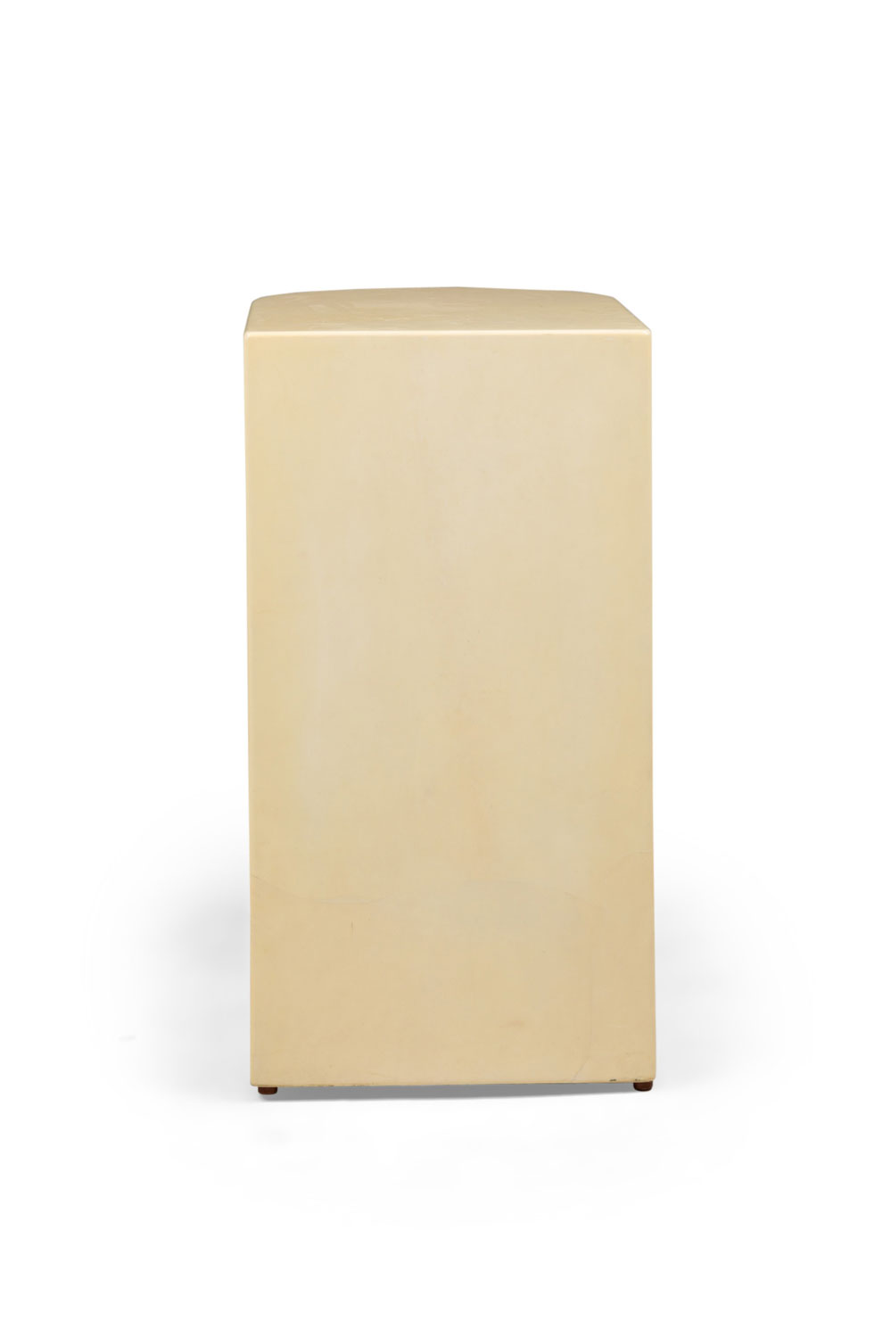 Mid-Century American beige goat skin pedestal / end table base) with a rounded front and flat back (KARL SPRINGER) (3 identical REG4050 and similar oval model REG4050C in LIC warehouse)