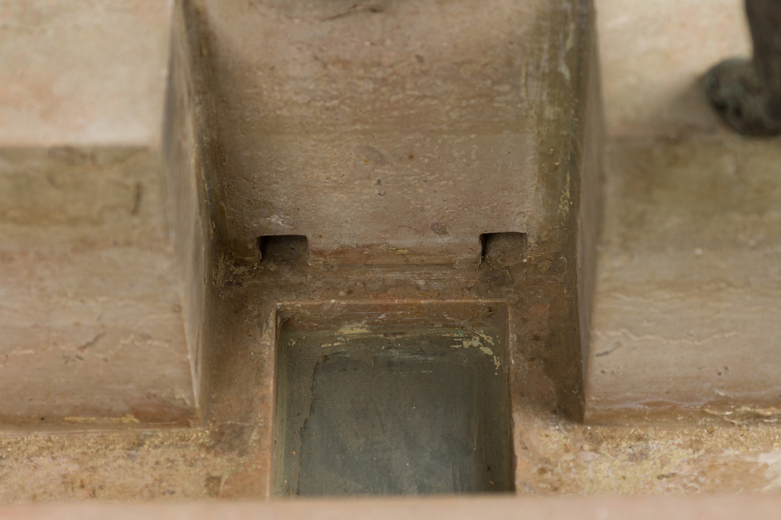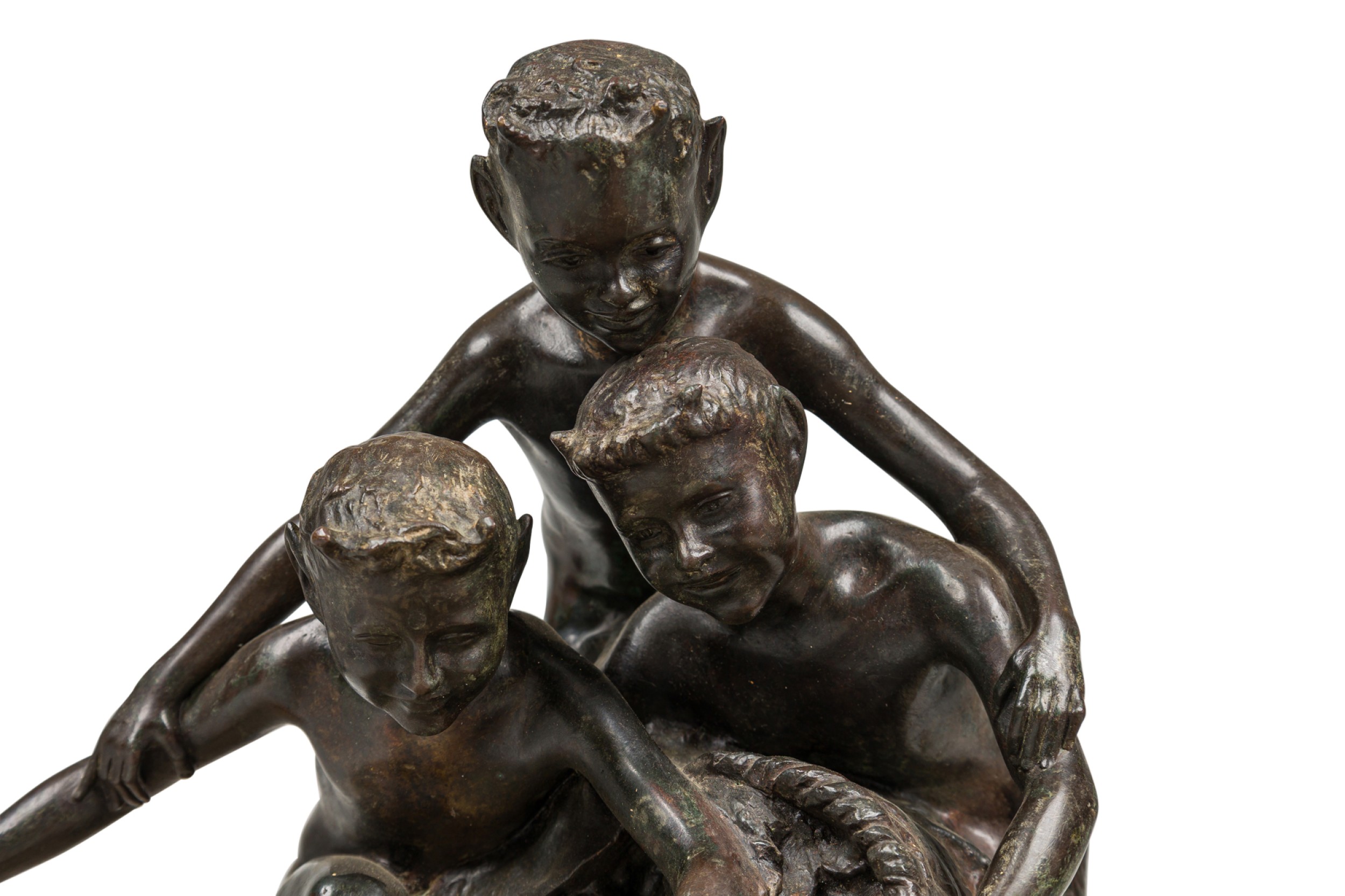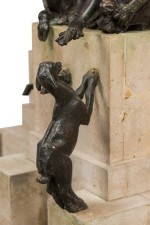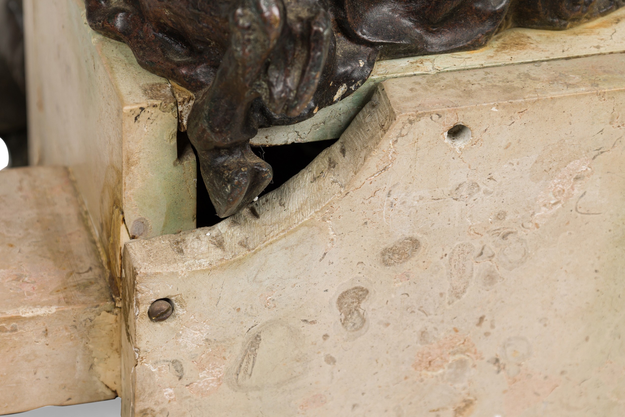 Hand carved and constructed 19th century Italian reciprocating water fountain scaled in marble and featuring bronze figures of 3 impish children luring a goat