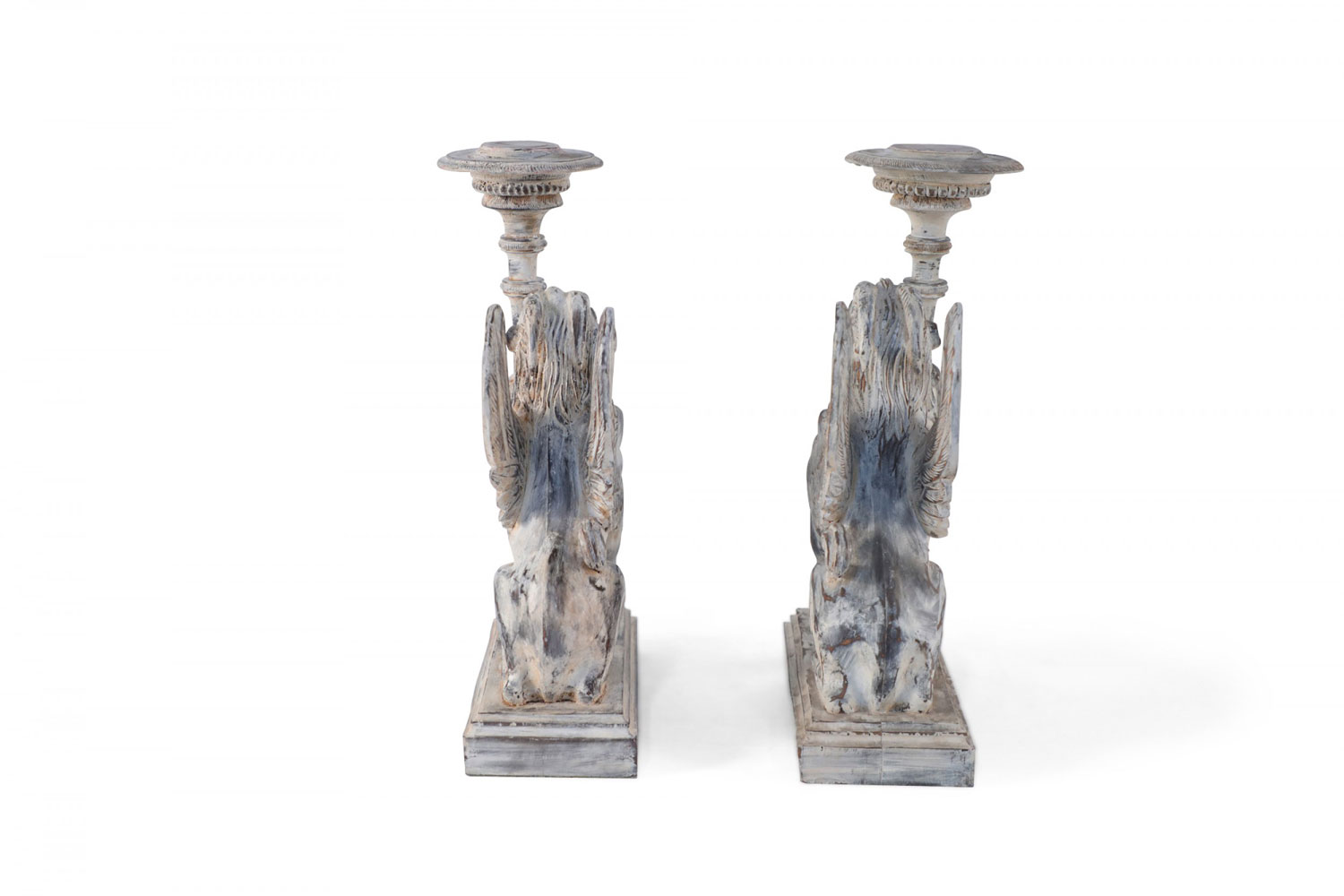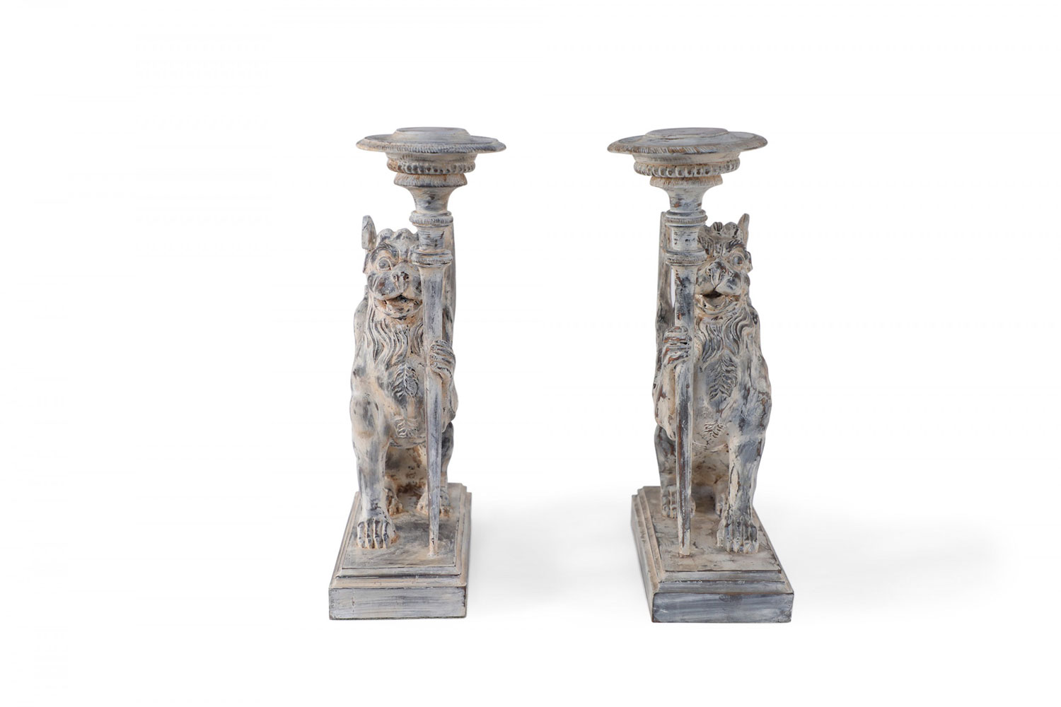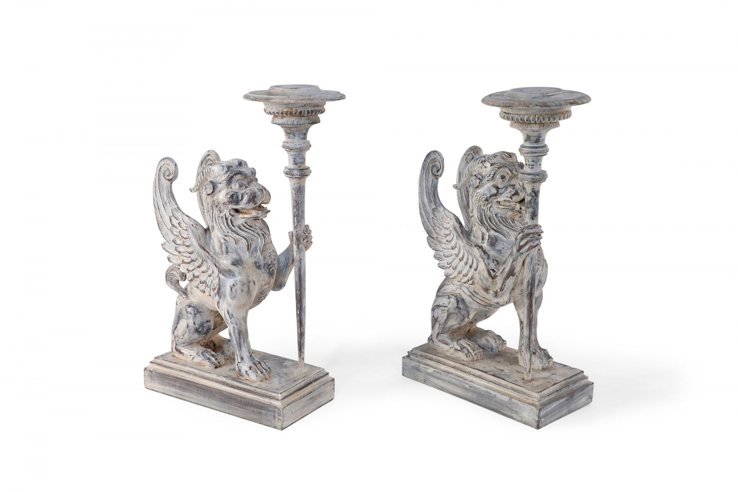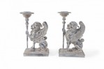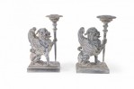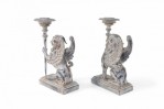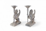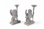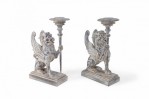 2 Pairs of Neo-Classical Style Carved Chimera Form Candle Holders / Bookends