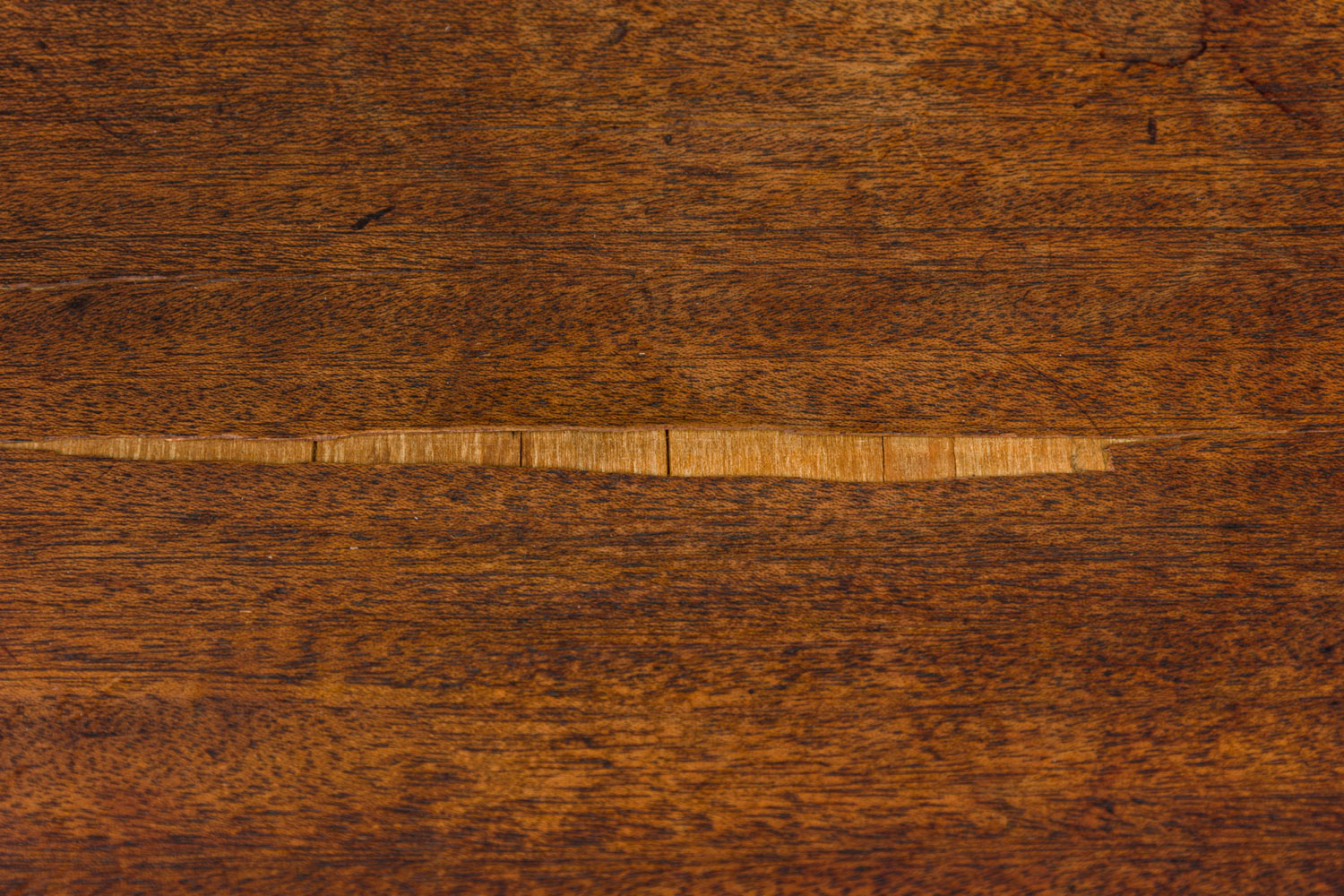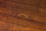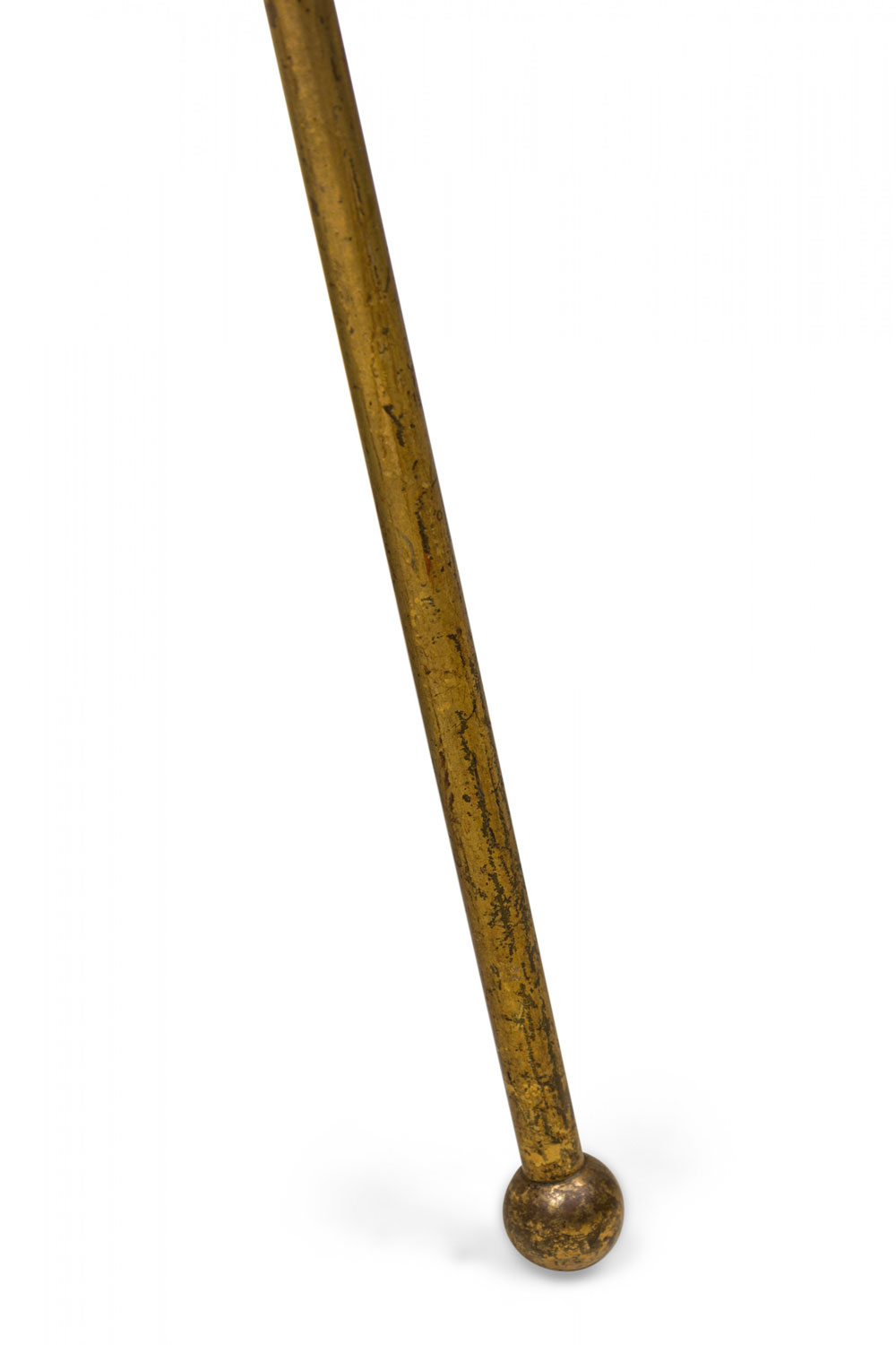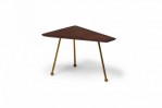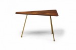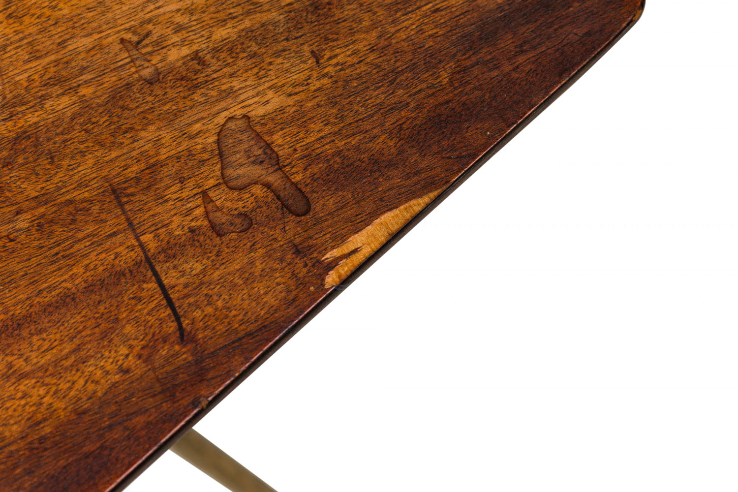 Style: Mid-Century Materials & Techniques: Brass, metal, wood Category: Tables Condition: Veneer losses and tarnish on legs of the large table. Smaller: 20.75" width, 15" depth, 13" height. Good; Minor losses