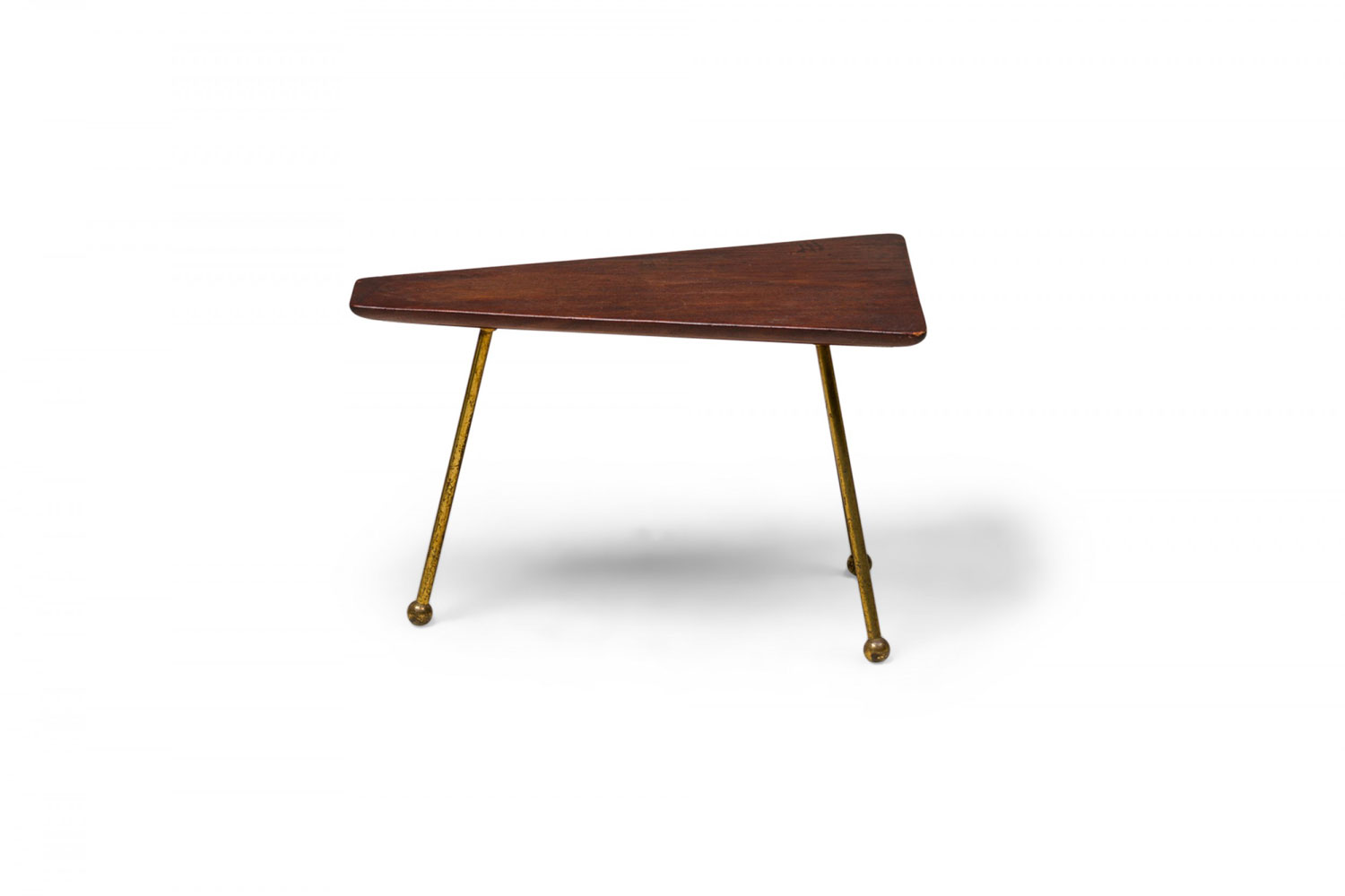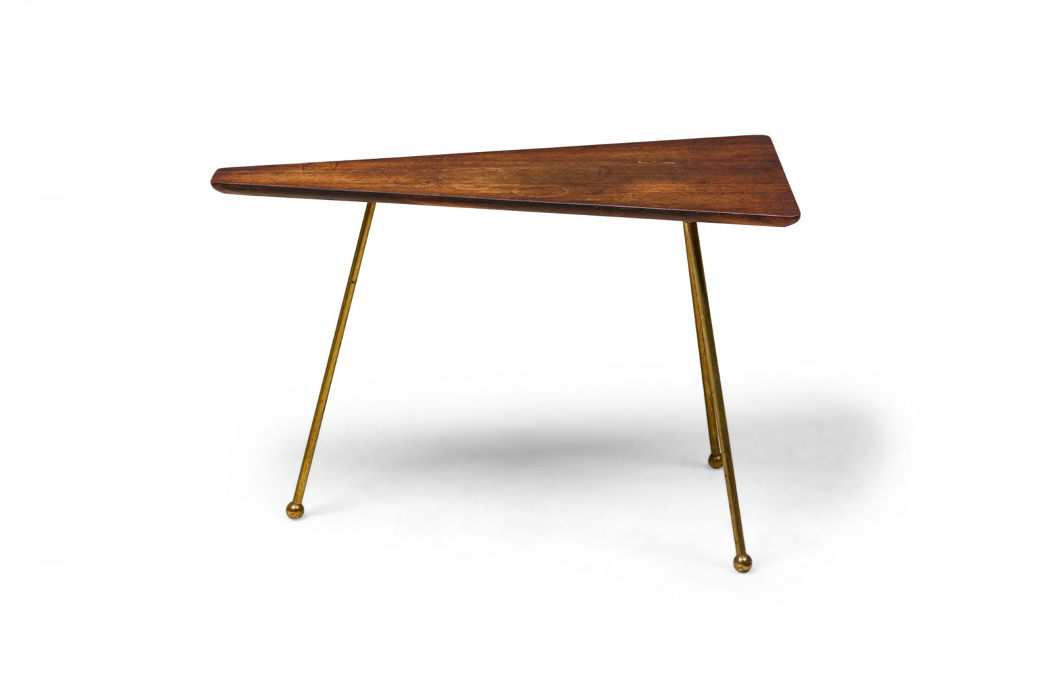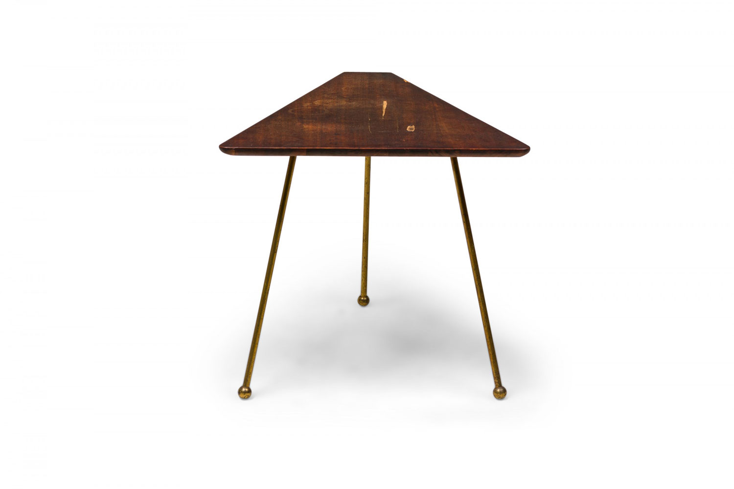 2 Piece Set of Mid-Century American four-sided wood nesting tables in a modern minimalist style standing on three splayed brass legs with ball feet. (MARTIN FREEDMAN) (PRICED AS SET)